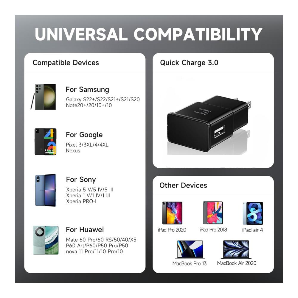 Erleben Sie mit dem Android Fast Charger ein blitzschnelles Ladeerlebnis für Ihre Samsung Galaxy S-Serie. Mit einem robusten 4FT Typ C Kabel und einer Leistung von 15W ist dieses Ladegerät perfekt für unterwegs geeignet. Dank hochwertiger Chips bietet es Schutz vor Überhitzung, Kurzschlüssen und Überladung. Die Kompatibilitätsliste ist umfangreich und umfasst Modelle wie S21, S20, S10 und mehr. Genießen Sie superschnelles Laden und eine bequeme Handhabung, ideal für Netzteile.