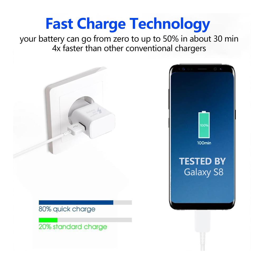 Adaptive Fast Charging Typ C Ladekabel: Mit der adaptiven Schnellladetechnologie für Samsung AFC-kompatible Geräte kann, Der Akku Ihres Galaxy S8 kann in etwa 30 Minuten von null auf bis zu 50% aufgeladen werden–75% schneller als mit einem Standard-Ladegerät.