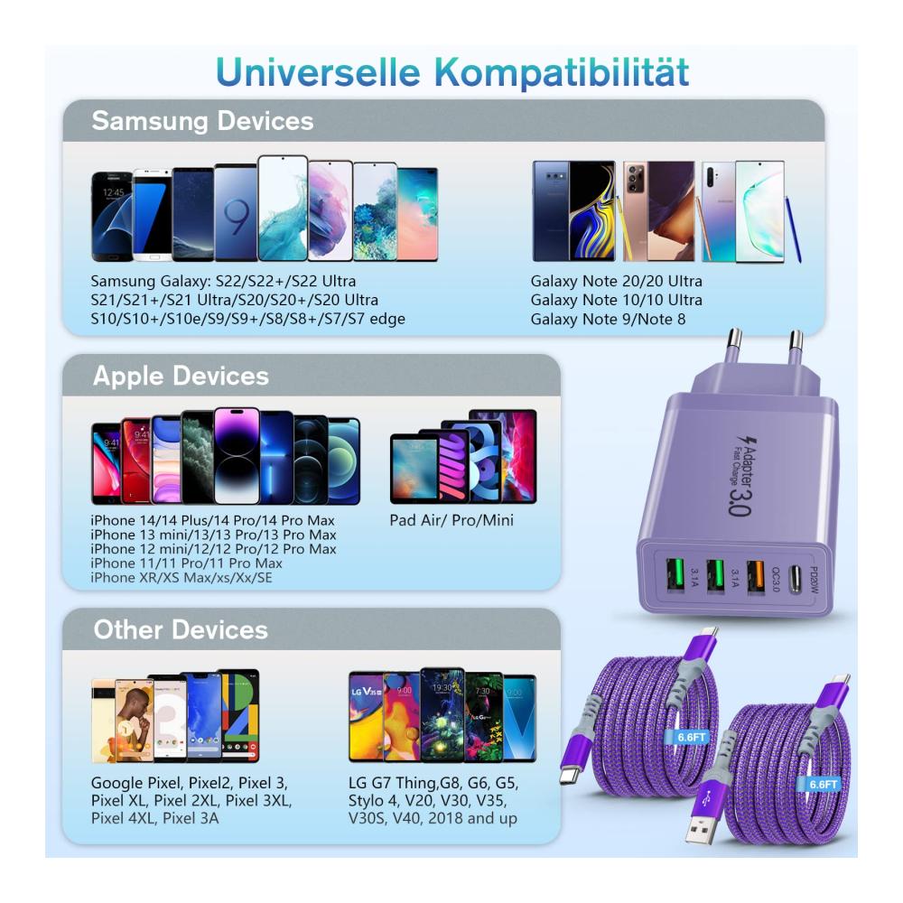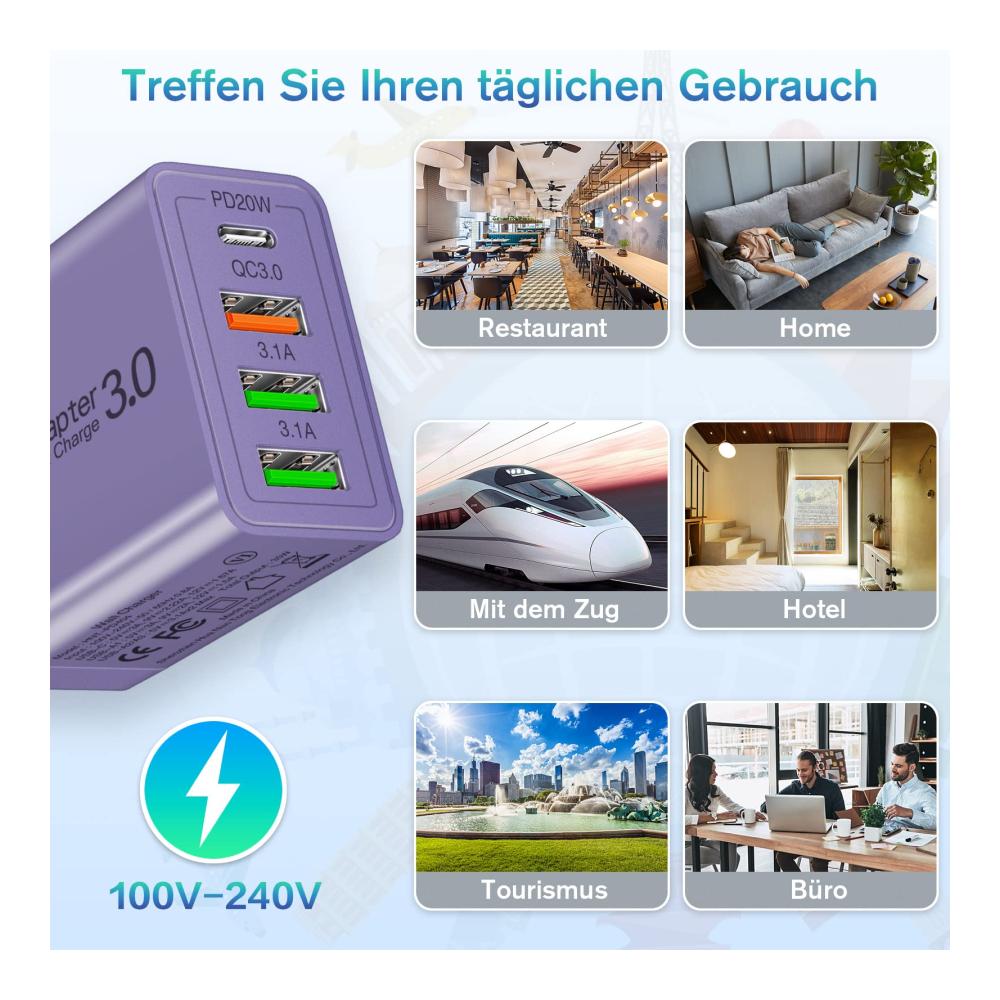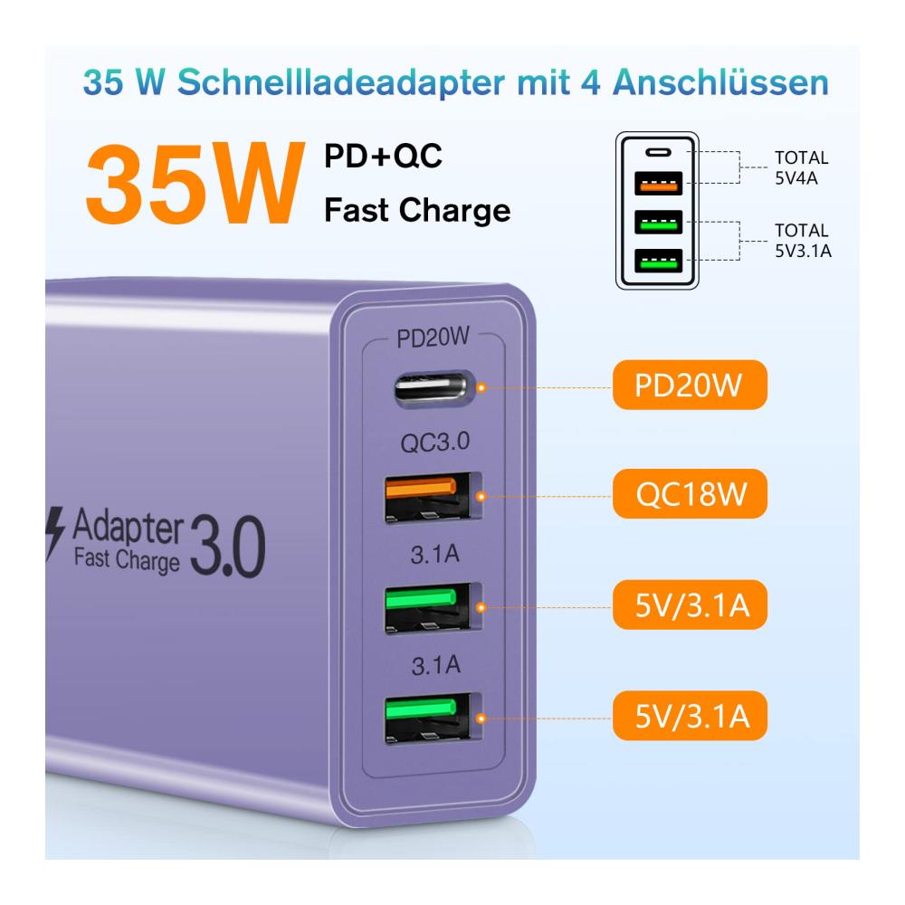 - 2 × 4 Port 35 W Ladegerät usb c(Lila)