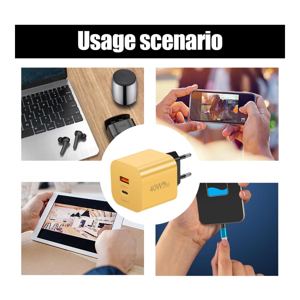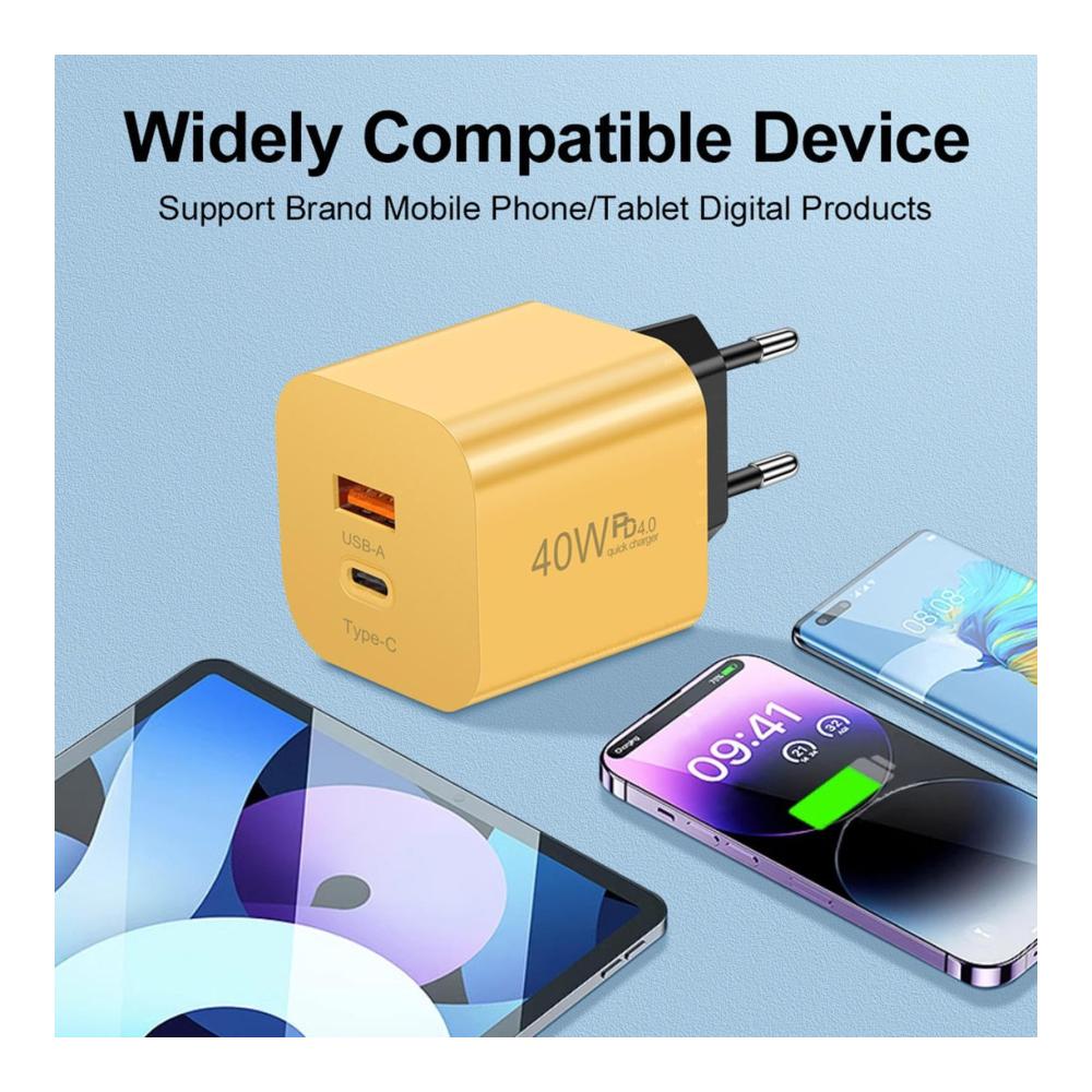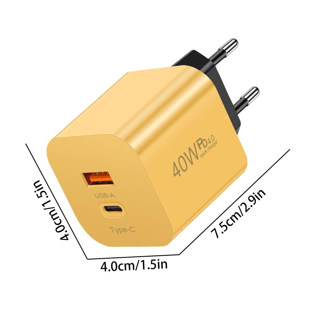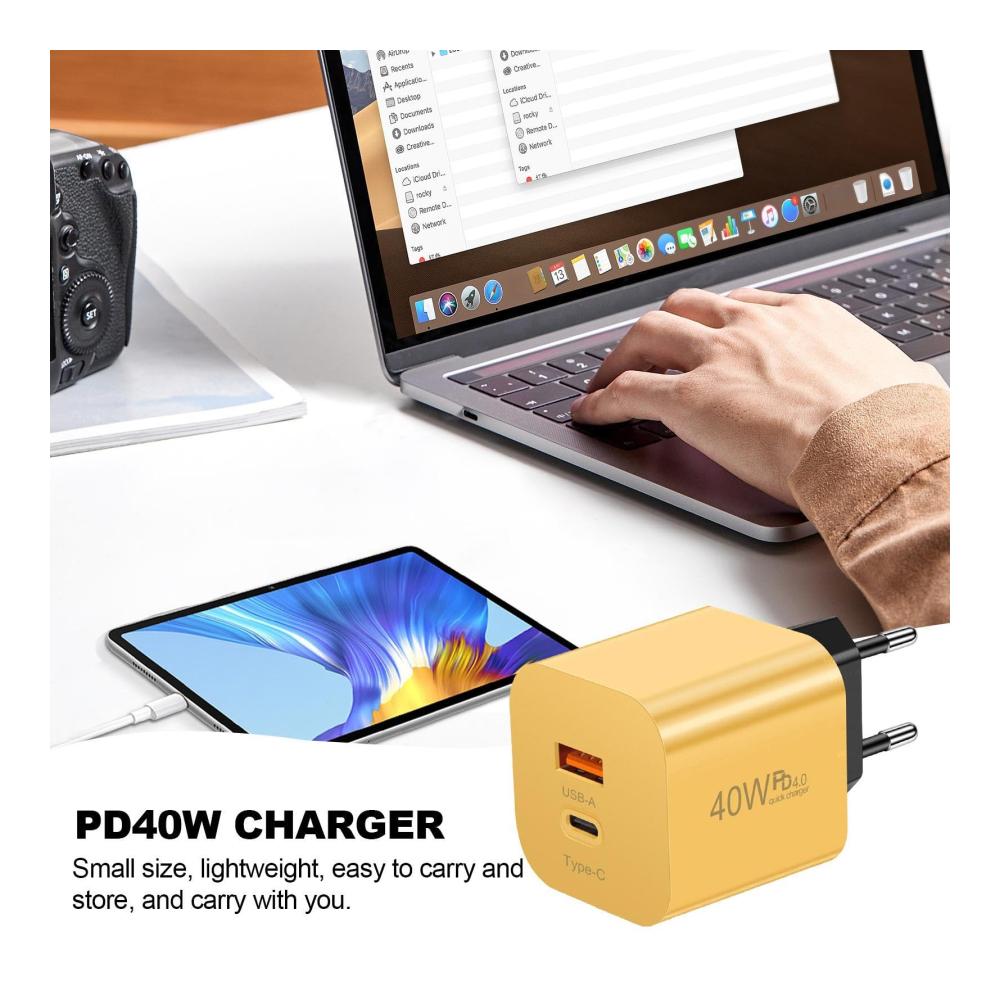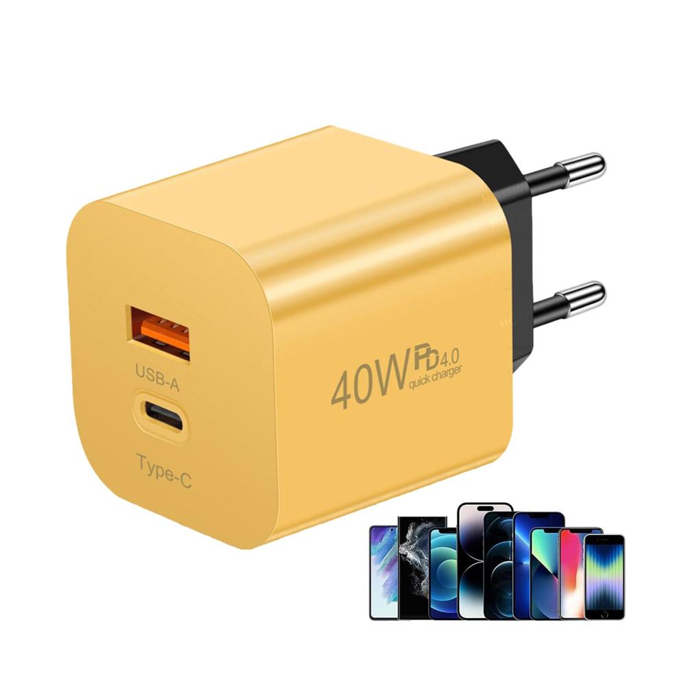 • Entdecken Sie ultimative Ladeleistung mit unserem Wandladeblock Schnellladegerät PD 40W. Der gelbe Ladeblock bietet Dual Port-Funktionalität und Überladeschutz, ideal für Zuhause oder Wohnung. Mit Typ-C- und USB-Anschlüssen ist dieses Ladegerät vielseitig einsetzbar und sorgt für effizientes Laden. Verlassen Sie sich auf unsere hochwertigen Netzteile für zuverlässige Energieversorgung. Laden Sie Ihre Geräte schnell und sicher auf und erleben Sie die Zukunft des Ladens.