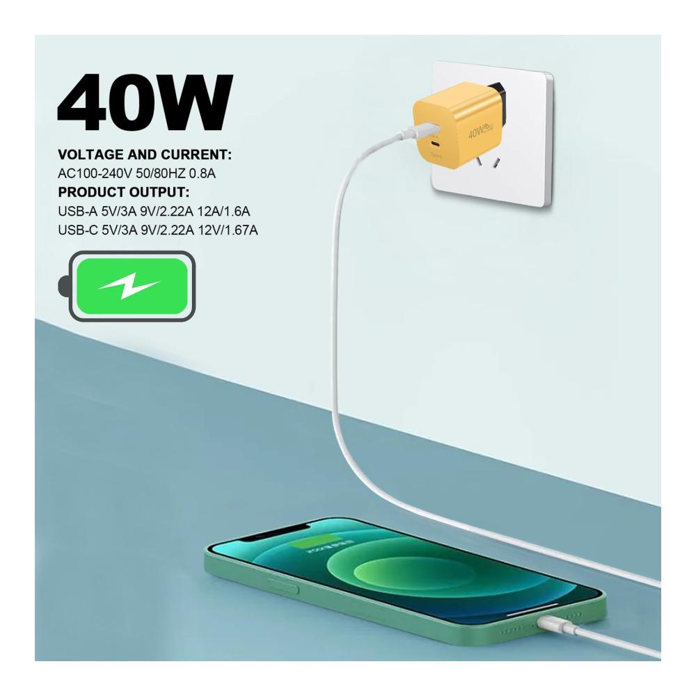 • ℒSchnellladeblock: Mit PD 40 W hoher Ausgangsleistung sorgt unser Schnellladeblock dafür, dass Ihr Telefon im Handumdrehen vollständig aufgeladen ist, wodurch Sie wertvolle Zeit sparen. Verbessern Sie Ihren Alltag mit unserem Schnellladedesign.