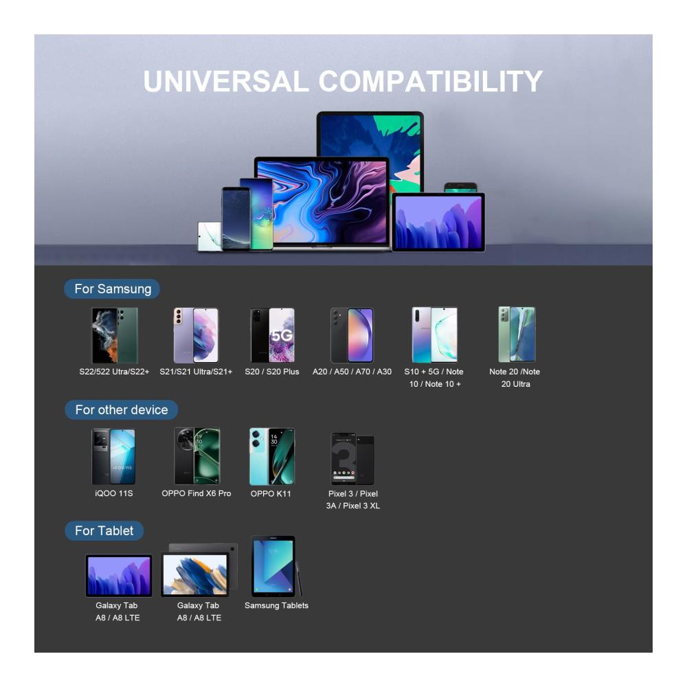 Das 15W Schnellladegerät USB C ist das ideale Ladegerät für unterwegs. Mit seinen zahlreichen Kompatibilitäten, darunter Samsung Galaxy S23 Ultra 5G, S23 Plus, S22 Ultra 5G, S21 Ultra 5G und mehr, ist es perfekt für Ihre Geräte. Die hochwertigen Chips schützen vor Überhitzung und Überladung. Das langlebige Design und die kompakte Größe machen es zum idealen Begleiter.