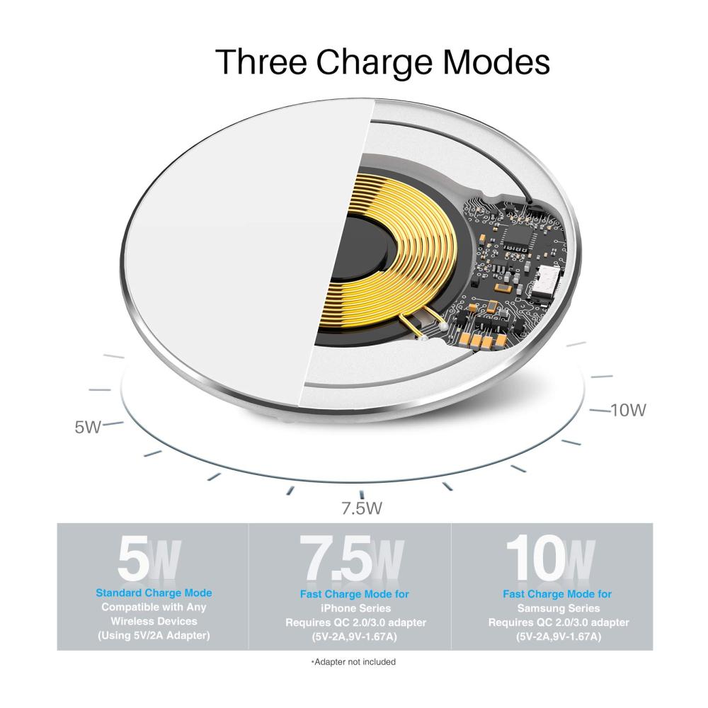 【Glatt und Dünn Design】Das W3 induktive Ladestation ist nur 2.5 mm dick und 90 mm breit. Seine leichte und kompakte Form macht es sehr tragbar, so dass Sie es mühelos in einer Tasche oder Tasche verstauen können.