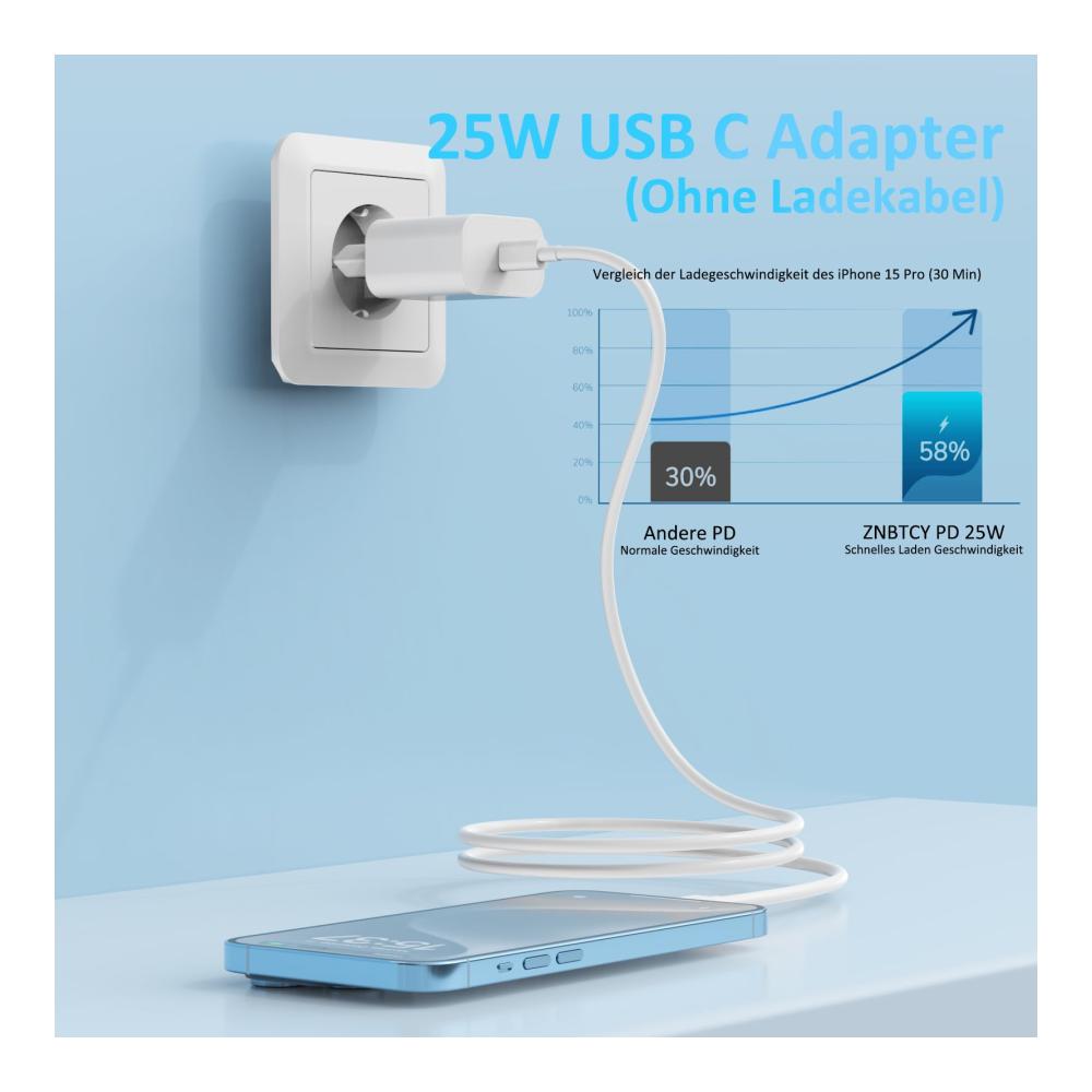 ◆ Perfekte Kompatibilität: ZNBTCY 25W Ladestecker USB C für iPhone 15/15 Pro/15 Pro Max/15 Plus/iPhone 14/14 Pro/14 Pro Max/14 Plus/13/13 Mini/13 Pro/13 Pro Max/12/12 Mini/12 Pro/12 Pro Max, iPhone SE, iPhone 11/11 Pro/11 Pro Max, iPhone 8 / 8 Plus, iPhone 7/7 Plus, iPhone 6/6 Plus, iPhone 5/5S/5C/SE, iPhone XS/XS Max/XR/X; Google Samsung Galaxy und mehr.