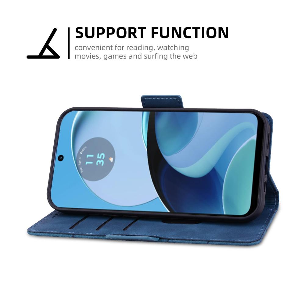 Erhalten Sie die perfekte Kombination aus Stil und Schutz für Ihr Motorola Moto g14 mit dieser blauen Klapphülle von ONETHEFUL. Das geometrische Muster verleiht Ihrem Gerät einen modernen Look. Ausgestattet mit magnetischem Verschluss, integriertem Ständer und Kartenschlitz bietet sie maximalen Komfort und Funktionalität.