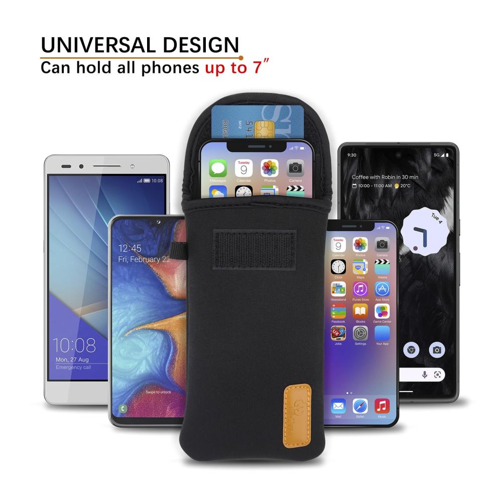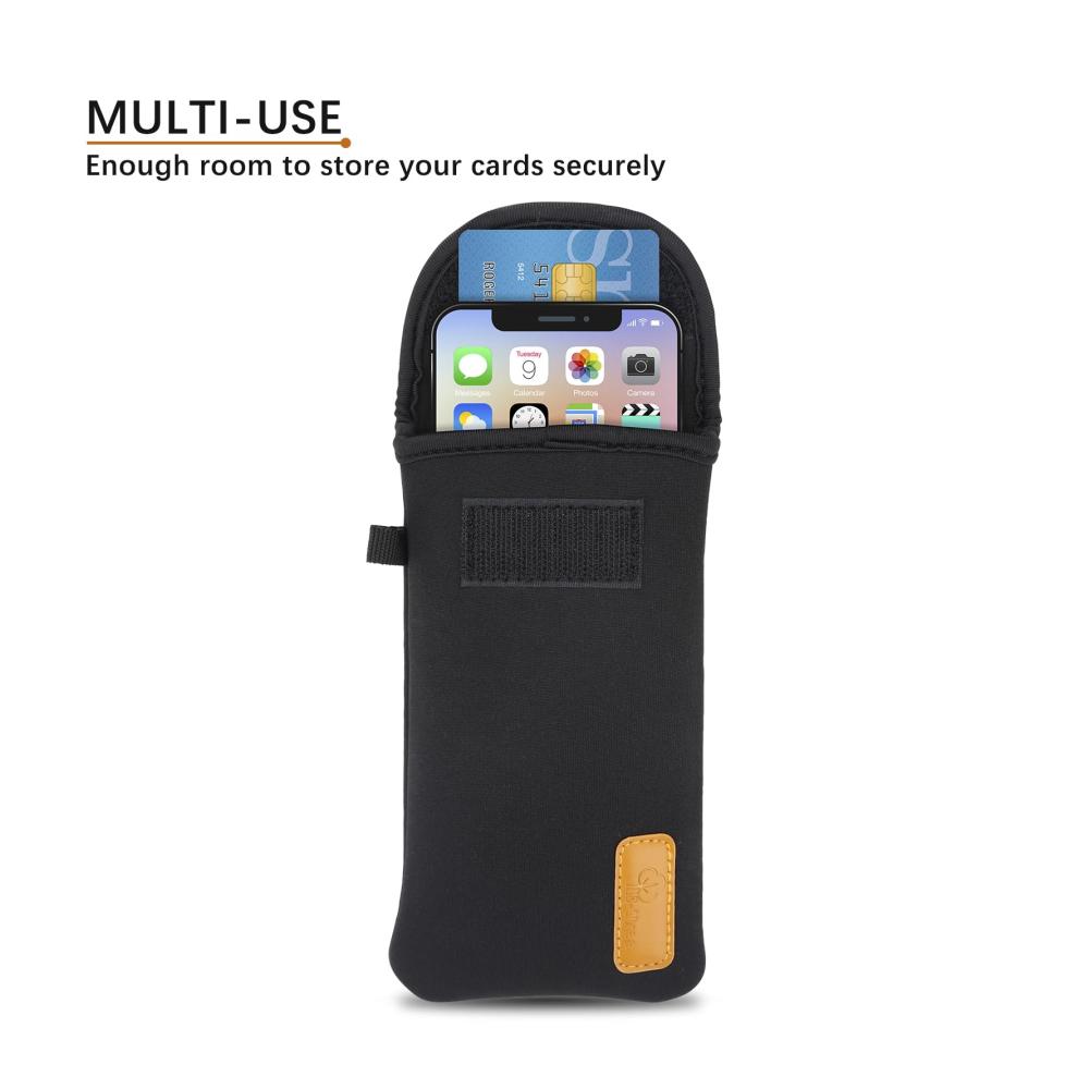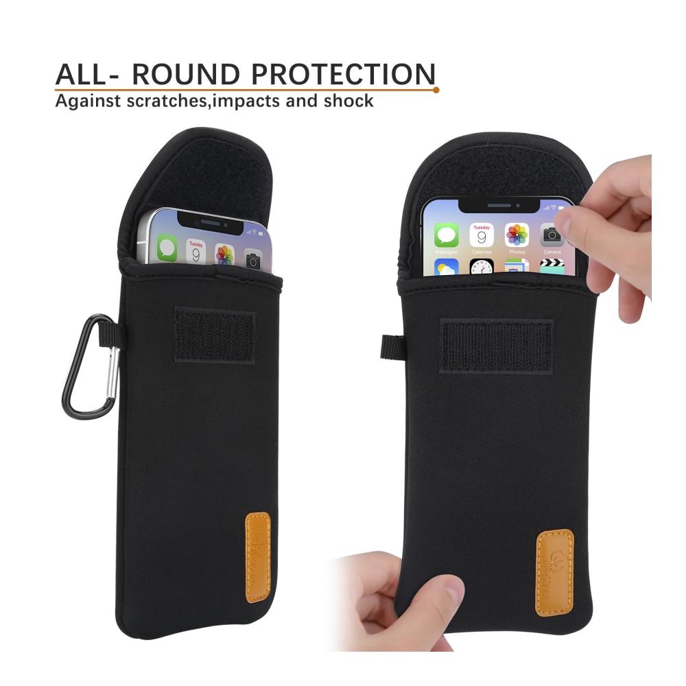 Der Außenstoff der Handysocke ist aus Neopren, leicht und praktisch. Größe: 18 x 1 x 9,5 cm, passend für Smartphones bis zu 6.7 zoll.