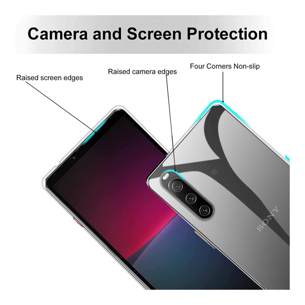 [Kompatible Telefone] Diese Schutzfolie aus gehärtetem Glas Silikonhülle wurde speziell für das Sony Xperia 10 V entwickelt. Perfekt für Ihr Sony Xperia 10 V. Der erhöhte Rahmen schützt Bildschirm und Kamera vor Kratzern.
