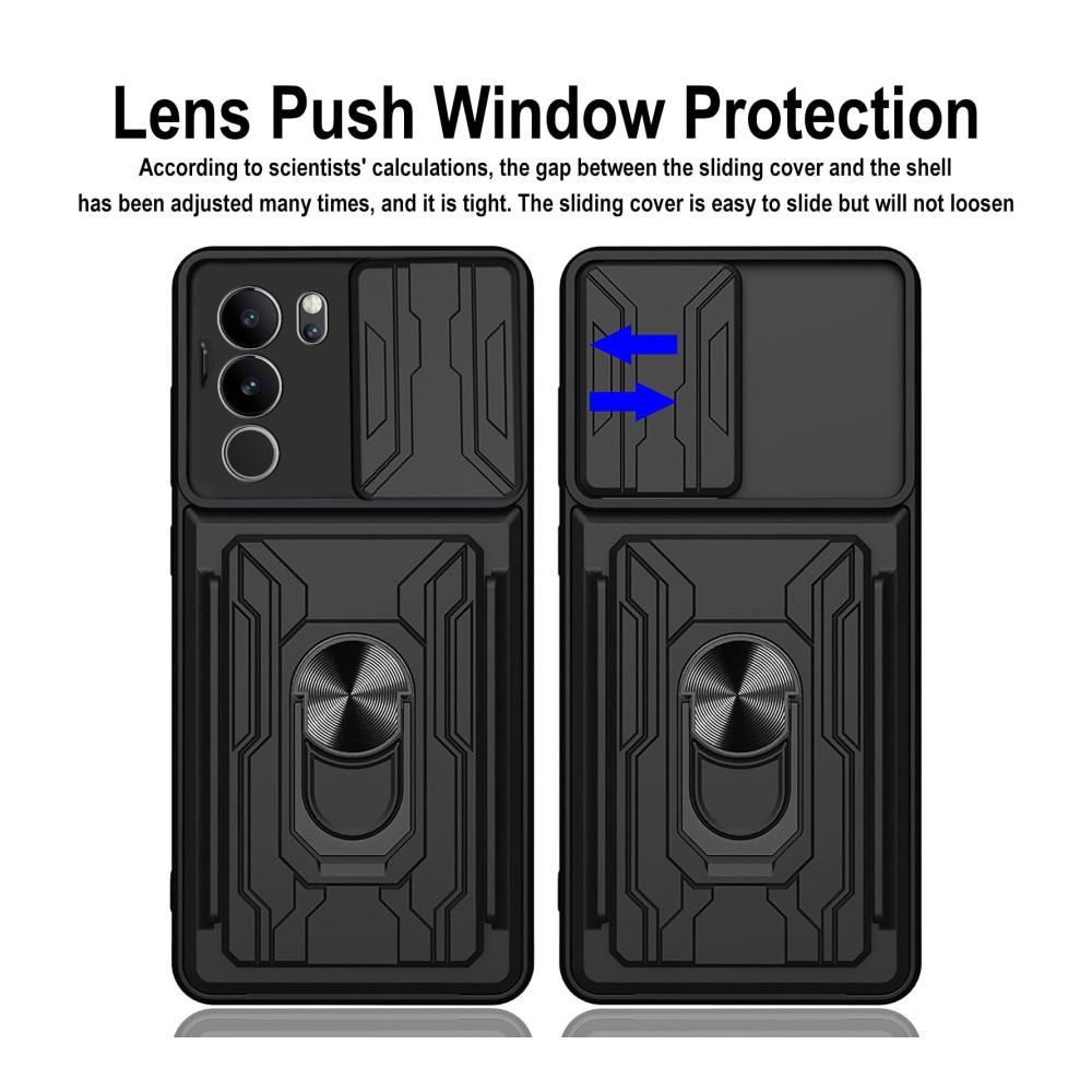 Kameraschutz: Die schützende Kameratasche mit Schiebeobjektiv kann das Telefonobjektiv bei versehentlichem Sturz vor Beschädigungen schützen und das Eindringen von Staub und Schmutz verhindern. Das Schiebefenster besteht aus hartem PC-Material, wodurch eine Beschädigung des Objektivs verhindert werden kann, was praktisch und schön ist. Umfassender Schutz: Vier Eck-Anti-Vibrations-Airbags fügen Fallschutz, Dämpfung und hervorstehendes Design hinzu, um Ihren Telefonbildschirm und das Kameraobjektiv vor jedem Sturzwinkel zu schützen. Material: Die perfekte Kombination aus harter PC-Rückenlehne und weichem TPU-Silikon-Stoßfänger, es ist sehr bequem, das Telefon zu installieren und zu entfernen und das Telefon effektiv vor Kratzern zu schützen. Eingebaute Halterung: Die Handyhülle wird mit einem Klappständer geliefert, so dass Sie Ihr Telefon horizontal auf den Tisch legen können, während Sie sich ausruhen, Ihre Hände frei halten und den Rest genießen. Schnellzugriff: Alle Tasten und Bedienelemente wie Kamera und Lautsprecher, Netzschalter, Audio-Stummschalttaste, Ladeanschluss und Lautstärketaste sind einfach zu bedienen. Packungsinhalt: 1x Hülle für VIVO V29 5G