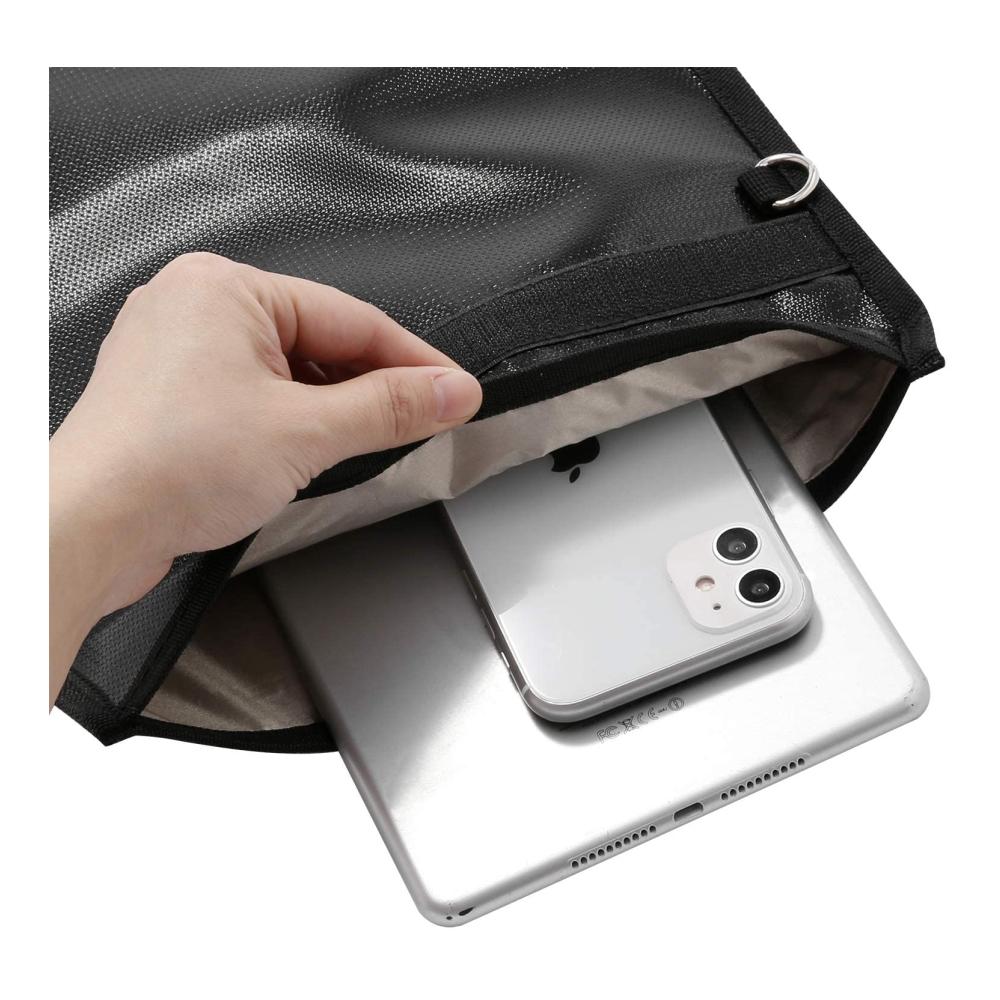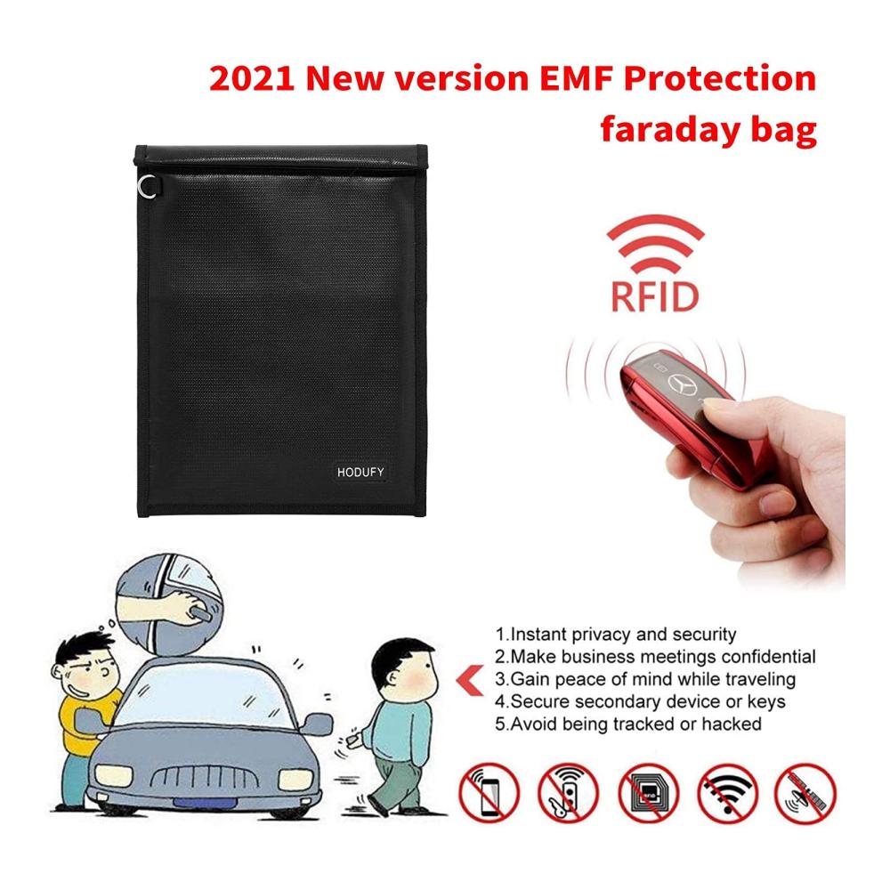 Schützen Sie Ihre Fernbedienungen mit der Hodufy Keyless Go Schutz Faraday Tasche (12,8 x 10 Zoll). Diese Tasche bietet eine Signalblockierfunktion, um Ihr Gerät vor Hackern zu schützen, indem sie Autoschlüsselsignale, WLAN, RFID und mehr blockiert. Darüber hinaus sind unsere feuerfesten Taschen speziell dimensioniert, um eine Vielzahl von Wertgegenständen sicher aufzubewahren, einschließlich Pässen, Bargeld, Schlüsseln und mehr. Investieren Sie in die Sicherheit Ihrer persönlichen Gegenstände mit Hodufy.