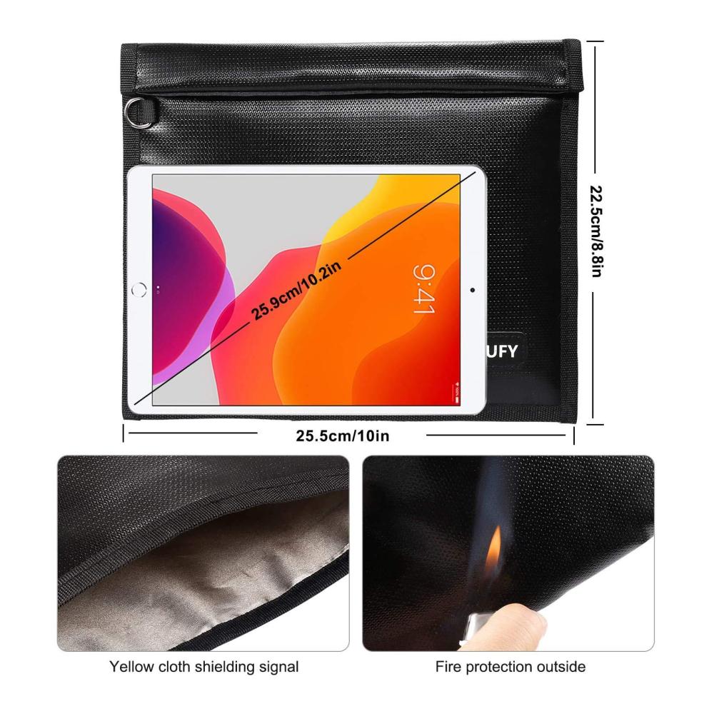 Schützen Sie Ihre Fernbedienungen mit der Großen Feuersicheren Wasserdichten Keyless Go Schutzhülle! Diese Tasche bietet eine Signalabschirmungsfunktion und hält Temperaturen bis zu 1000°C stand. Mit ihrem Design mit großer Kapazität bietet sie Platz für Tablet-Computer, Mobiltelefone, Ausweise, Reisepässe, Bankkarten und mehr. Blockieren Sie alle Signale und Strahlung, um Hackerangriffe, Tracking, Signalverstärkungsangriffe und Datendiebstahl zu verhindern. Sichern Sie Ihr Auto, indem Sie die Kommunikation zwischen Fahrzeug und Autoschlüssel unterbinden. Vertrauenswürdiger Kundendienst mit 24-Stunden-E-Mail-Kontaktservice und einer 30-tägigen Rückerstattung sowie lebenslanger Garantie. 100% Zufriedenheitsgarantie