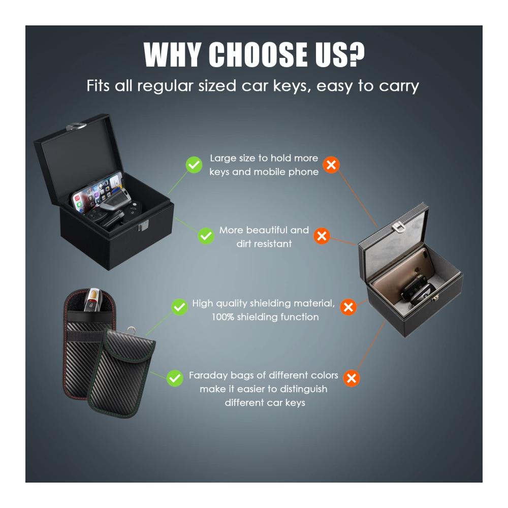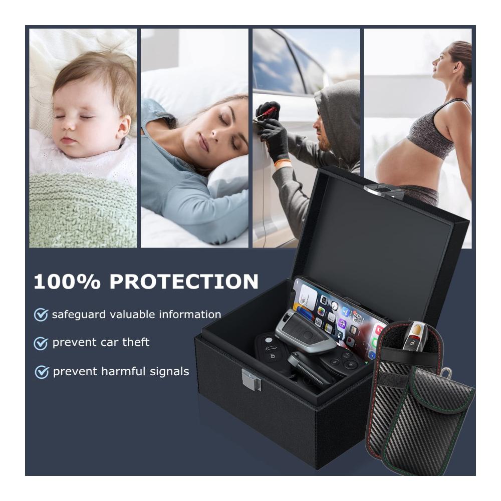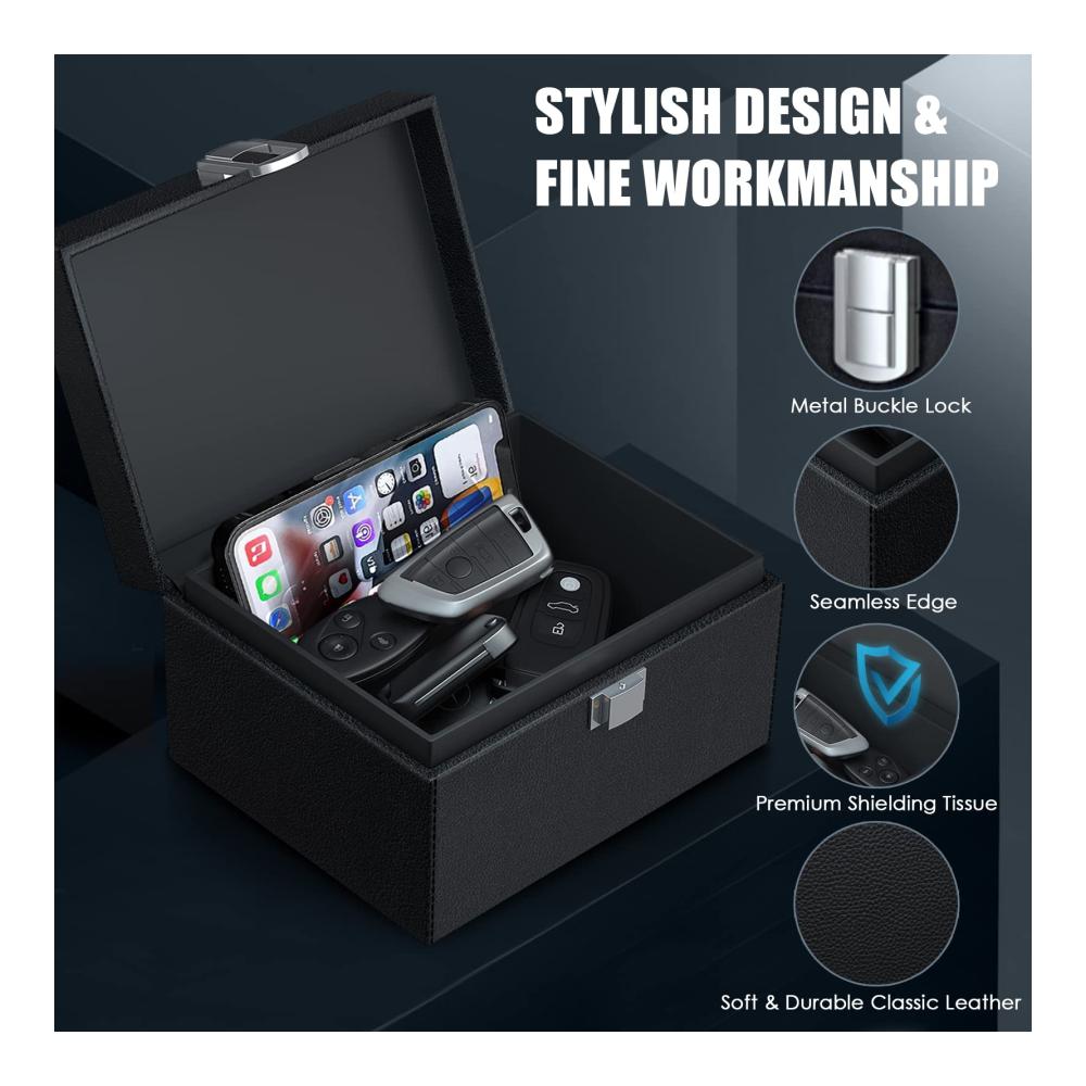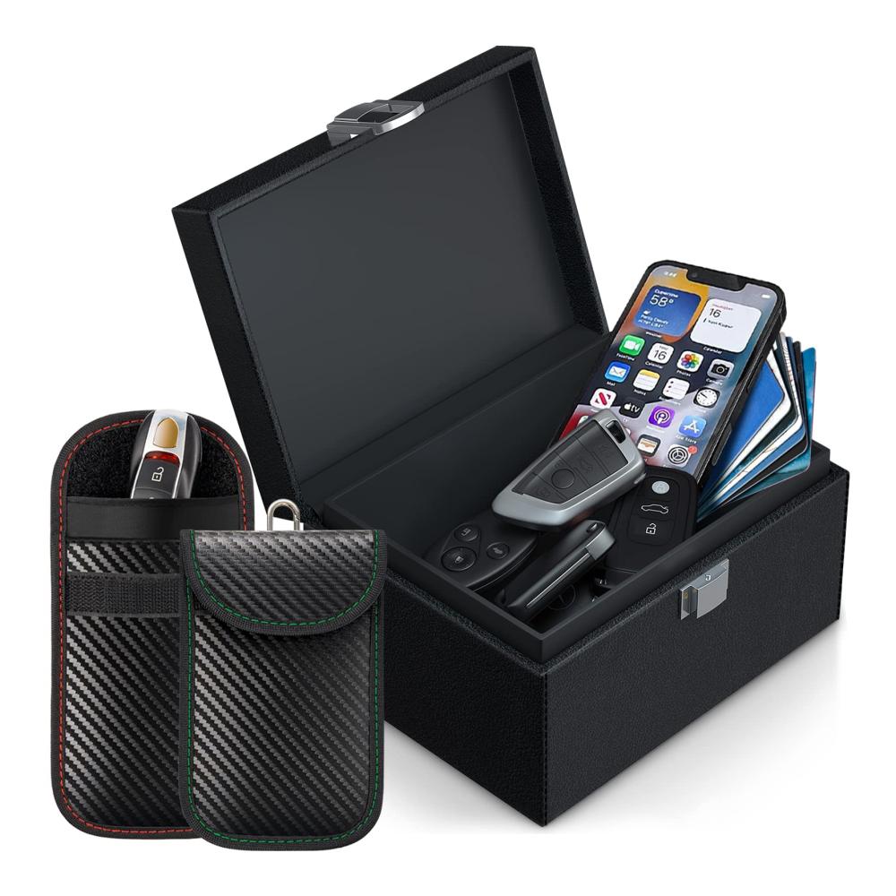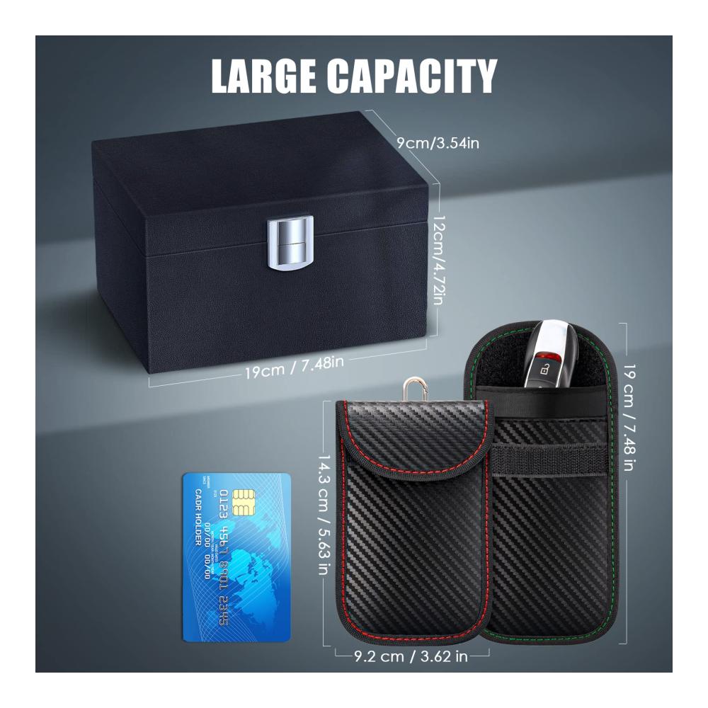 [GROSSE KAPAZITÄT]- Größe 19 x 12 x 9 cm, um viele Gegenstände auf einmal unterzubringen. Sie können Ihre Autoschlüssel, Ihr Telefon, Ihre Kreditkarte und sogar Ihr Portemonnaie sicher in dieser Box aufbewahren und müssen sich nie wieder Sorgen machen, dass Signale gehackt werden