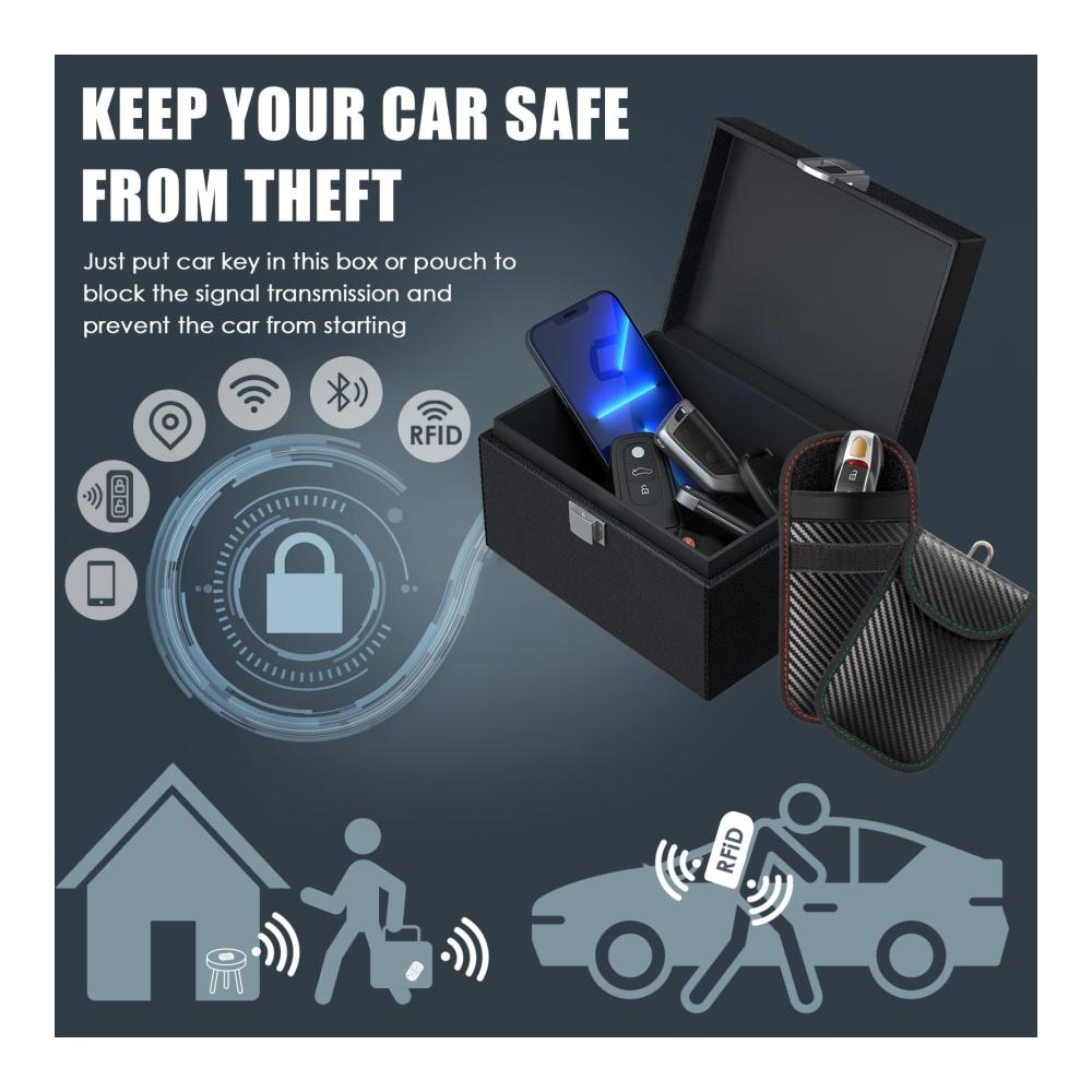[SAFE & SECURE] – Sobald Ihr Autoschlüssel in diese geschlossene Faraday-Box oder -Tasche gelegt wird, hört das Schlüsselanhängersignal auf zu senden, um Ihren Autodiebstahl zu verhindern