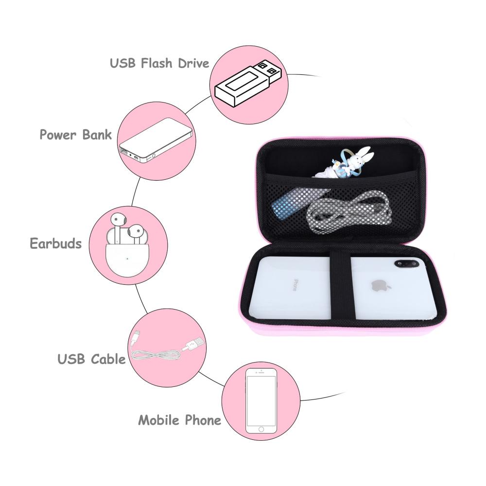 Es kann Ladegerät, Ohrhörer, kleine Powerbank, USB-Kabel, Lippenstift und andere kleine Gegenstände halten.