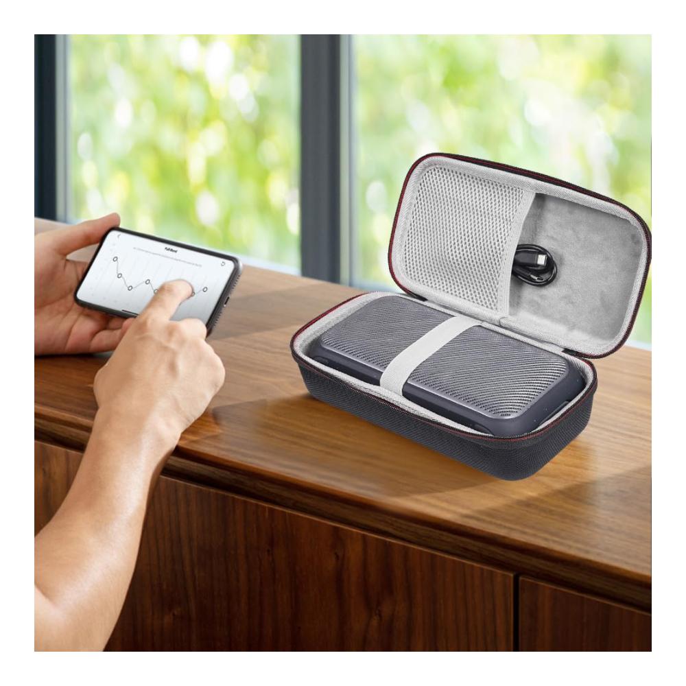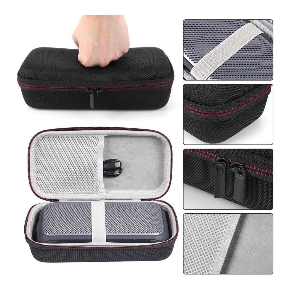Superior Guard — The Carrying Case Bag, made from a robust EVA hard She&34;-&34;ll, provides excellent protection against dust and splashes. It features a velvet-lined interior for protection against drops, scratches, and shocks, while the secure strap offers extra safeguarding for your speaker.