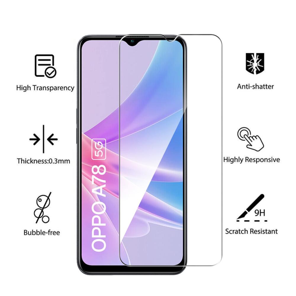 Doppellagiges Material: Die Kombination aus kratzfester Acrylrückseite und TPU-Kante schützt das Telefon vor Stürzen, Stößen und Kratzern und erleichtert die Installation und Demontage des Gehäuses. Stoßdämpfung: Vier stabile Eckstoßfänger schützen Ihr Telefon vor versehentlichem Herunterfallen, während langlebige, weiche Materialien zuverlässigen Schutz vor jeder anderen Art von versehentlichen Stößen bieten. Transparent und elegant: Die kristallklare Rückseite besteht aus Acrylmaterial, das immer glatt ist und das ursprüngliche Aussehen des Telefons vollständig zeigt. Es hat auch eine Anti-Fingerabdruck-Funktion, die effektiv Vergilbung bekämpft, um Ihr Telefon immer sauber und fehlerfrei zu halten. Packung Enthält: Dieses Set enthält 3 Stück 9H Härte gehärtete Glasfolie. Es bietet leistungsstarken Kratzschutz und klare Bilder, ohne die ursprüngliche Reaktionsempfindlichkeit zu beeinträchtigen. Tipps: Auf der Rückseite der Handyhülle befindet sich eine Schicht Anti-Kratz-Folie, bitte entfernen Sie die Anti-Kratz-Folie bevor Sie die Handyhülle installieren. Packungsinhalt: 1x Acryl Hülle für Oppo A78 5G 3x Displayschutz 3x Feuchttücher 3x Mikrofasertuch 3x Staubdichter Aufkleber