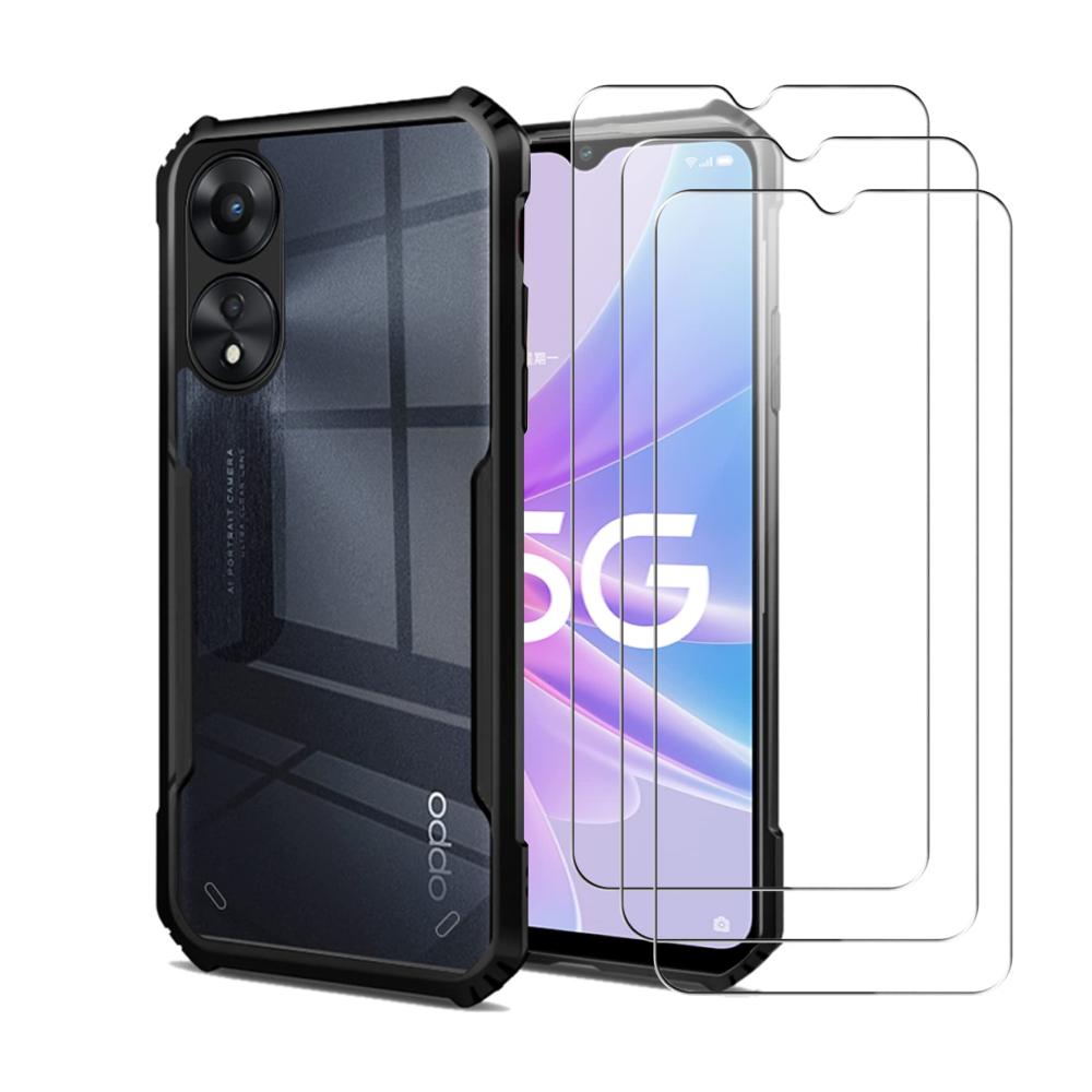 Die hochwertige Hülle für Oppo A78 5G bietet einen doppelten Schutz dank der Kombination aus kratzfester Acrylrückseite und stoßdämpfendem TPU-Rand. Vier stabile Eckstoßfänger schützen Ihr Telefon zuverlässig vor versehentlichen Stößen. Die kristallklare Rückseite aus Acrylmaterial bewahrt das ursprüngliche Aussehen Ihres Telefons und bekämpft effektiv Vergilbung. Das Set enthält außerdem 3 Stück 9H gehärtete Glasfolien für maximalen Displayschutz.