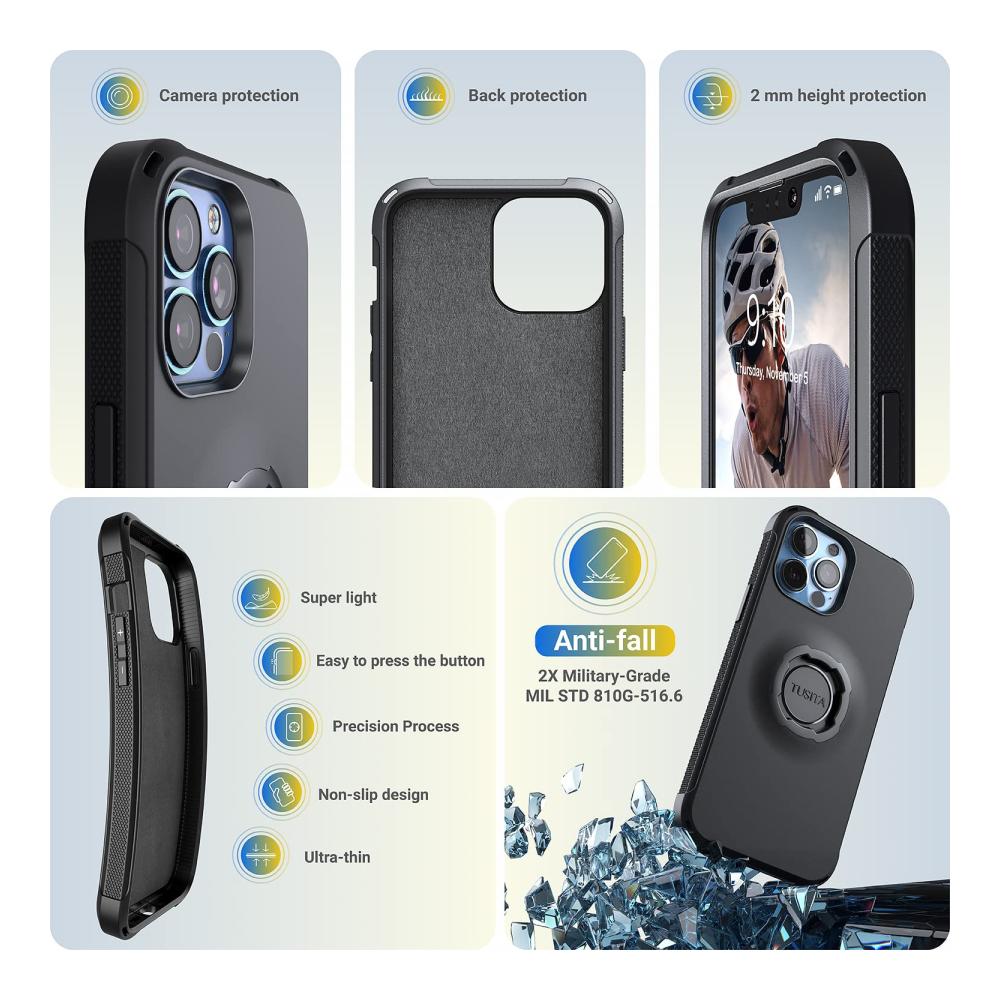 – Entwickelt, um Ihre Geräte sowohl auf der Straße als auch im Gelände zu ergänzen, nutzen Sie diesen Vorteil, indem Sie Ihr iPhone an Ihrem Fahrrad befestigen. Die Form des Gehäuses passt genau über die Lautstärketasten, Seitentasten und Kurven Ihres Geräts, und Kurven Ihres Geräts ohne zusätzliche Masse und mit rutschfestem Rahmen.