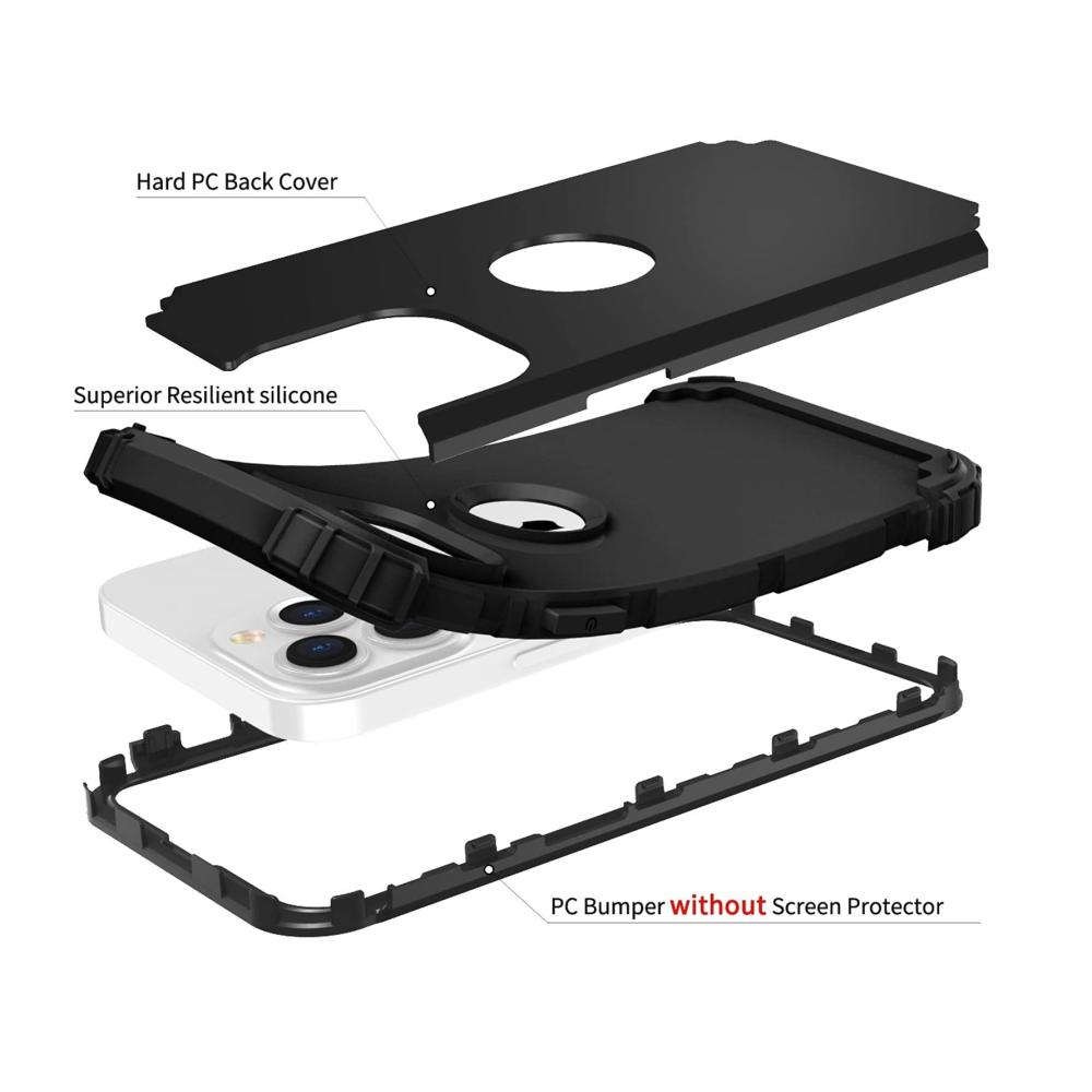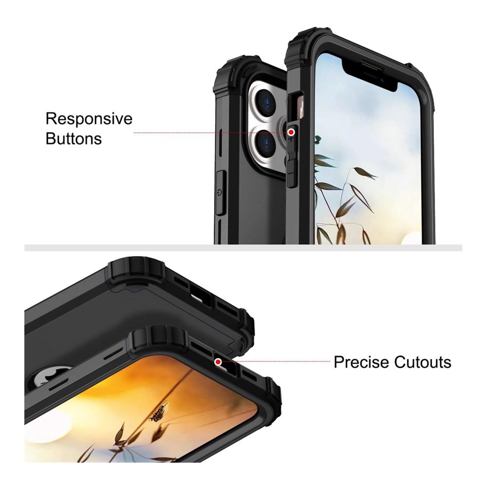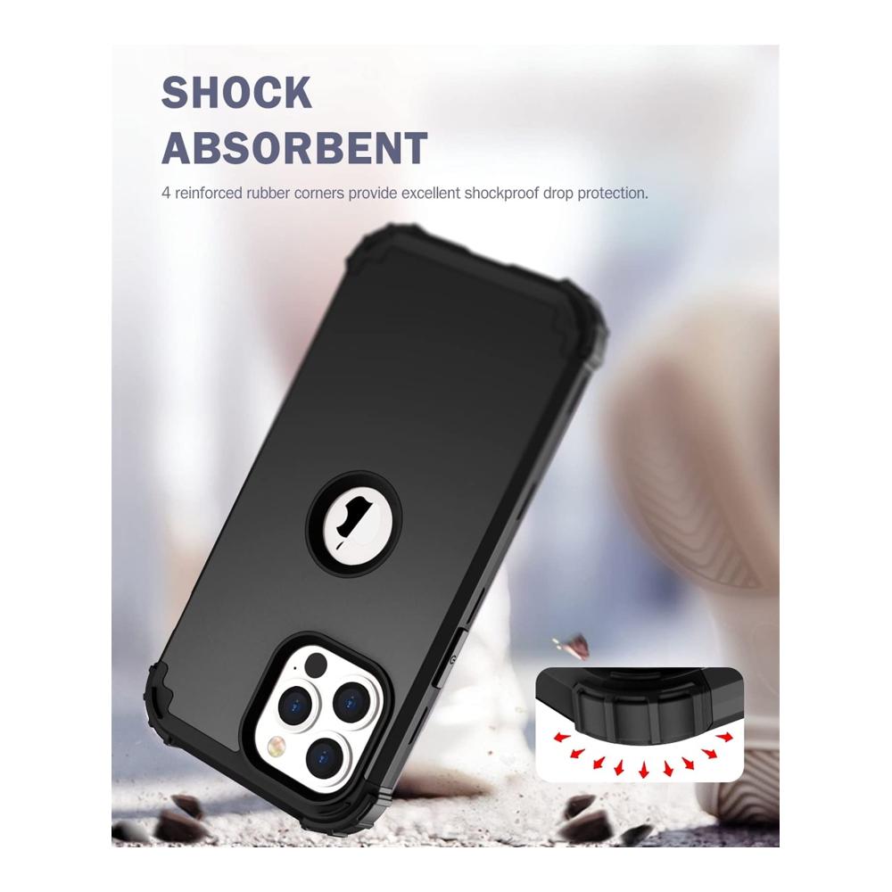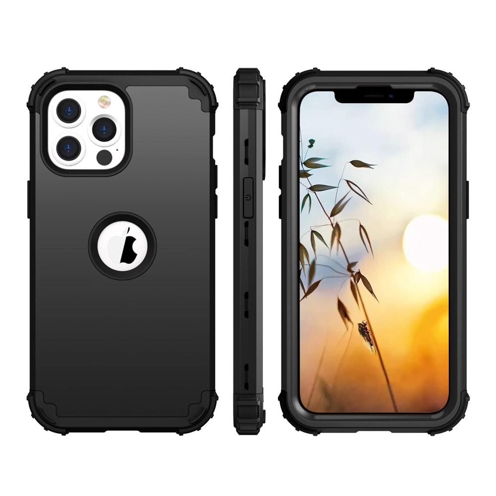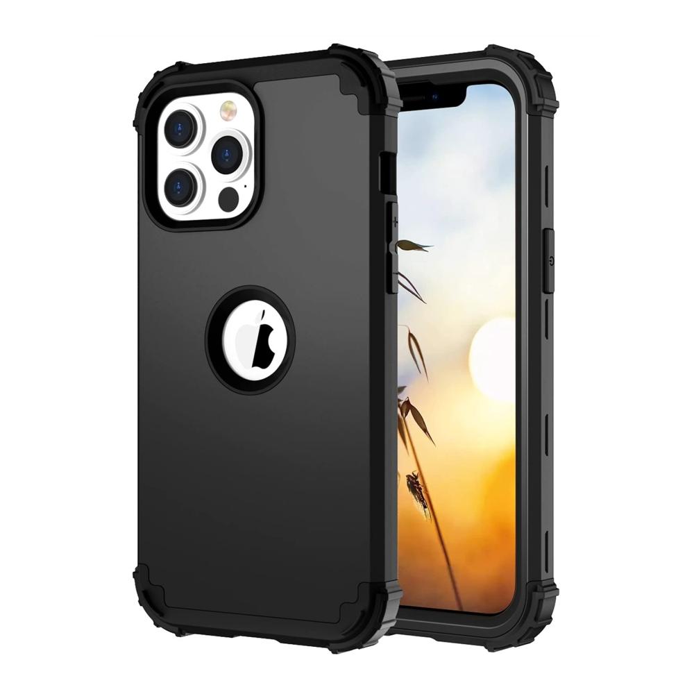 Egal, ob Sie Ihr iPhone 14 Max vor Stürzen oder Kratzern schützen möchten, unsere schwarze 3-in-1 PC TPU Heavy Duty Hybrid Armor High Impact Stoßfeste Schutzhülle ist die richtige Wahl. Mit einem Snap-on-Design aus Polycarbonat-Hartschale und einer weichen Silikon-Innenhülle bietet sie einen Standard-Schutz, der auch modisch ist.