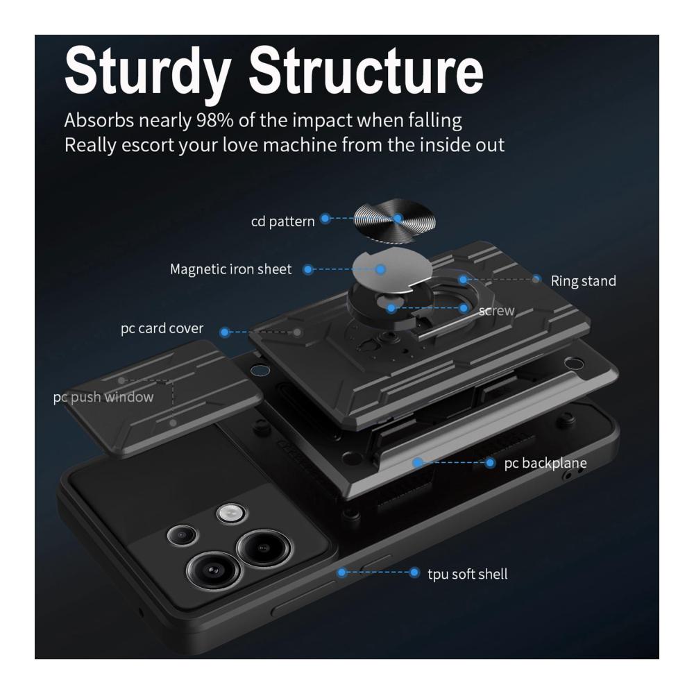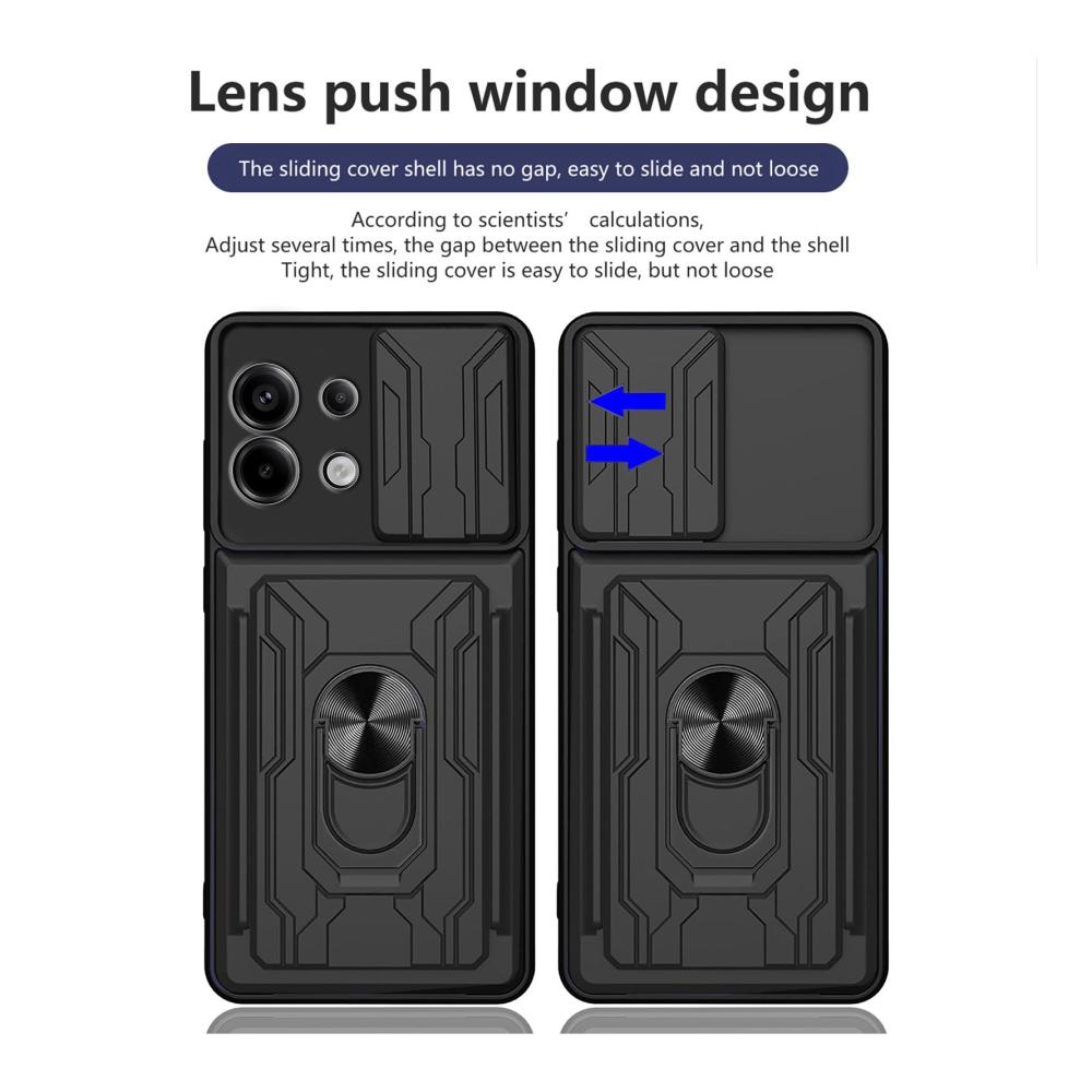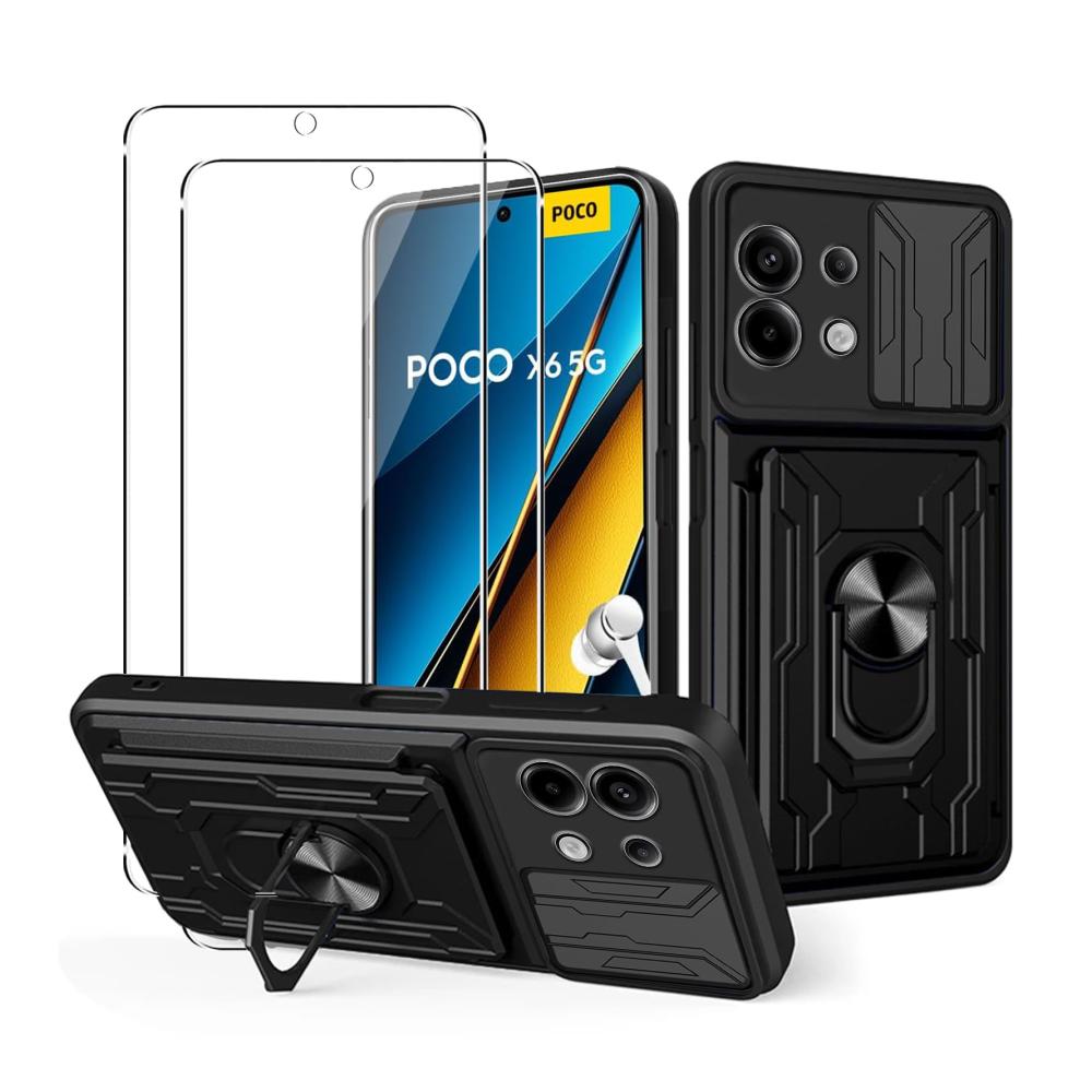 Umfassender Schutz: Vier Eck-Anti-Vibrations-Airbags fügen Fallschutz, Dämpfung und hervorstehendes Design hinzu, um Ihren Telefonbildschirm und das Kameraobjektiv vor jedem Sturzwinkel zu schützen. Premium Material: Die perfekte Kombination aus harter PC-Rückenlehne und weichem TPU-Silikon-Stoßfänger, es ist sehr bequem, das Telefon zu installieren und zu entfernen und das Telefon effektiv vor Kratzern zu schützen. Eingebaute Halterung: Die Handyhülle wird mit einem Klappständer geliefert, so dass Sie Ihr Telefon horizontal auf den Tisch legen können, während Sie sich ausruhen, Ihre Hände frei halten und den Rest genießen. Kameraschutz: Die schützende Kameratasche mit Schiebeobjektiv kann das Telefonobjektiv bei versehentlichem Sturz vor Beschädigungen schützen und das Eindringen von Staub und Schmutz verhindern. Das Schiebefenster besteht aus hartem PC-Material, wodurch eine Beschädigung des Objektivs verhindert werden kann, was praktisch und schön ist. Displayschutz: Gehärtete Glasfolie mit bis zu 9H Härte, effektive Kratzfestigkeit, kann den Schäden am Bildschirm durch scharfe und harte Gegenstände standhalten. Ultradünne Bildschirmschoner sorgen für eine RAW-Reaktionsempfindlichkeit und liefern scharfe Bilder. Packungsinhalt: 1x Hülle für Xiaomi Redmi Note 13 PRO 5G/POCO X6 5G 2x Displayschutz 2x Feuchttücher 2x Mikrofasertuch 2x Staubdichter Aufkleber