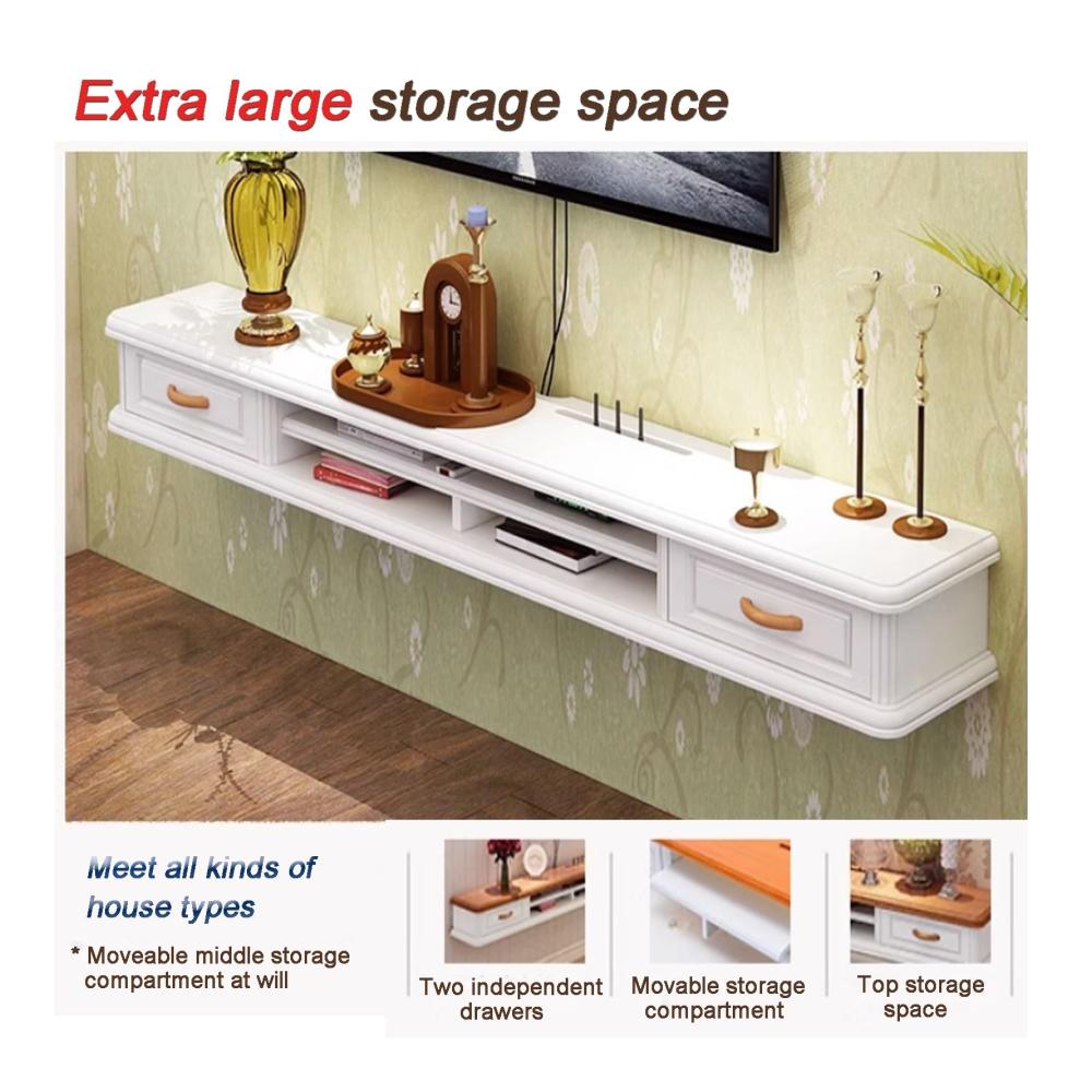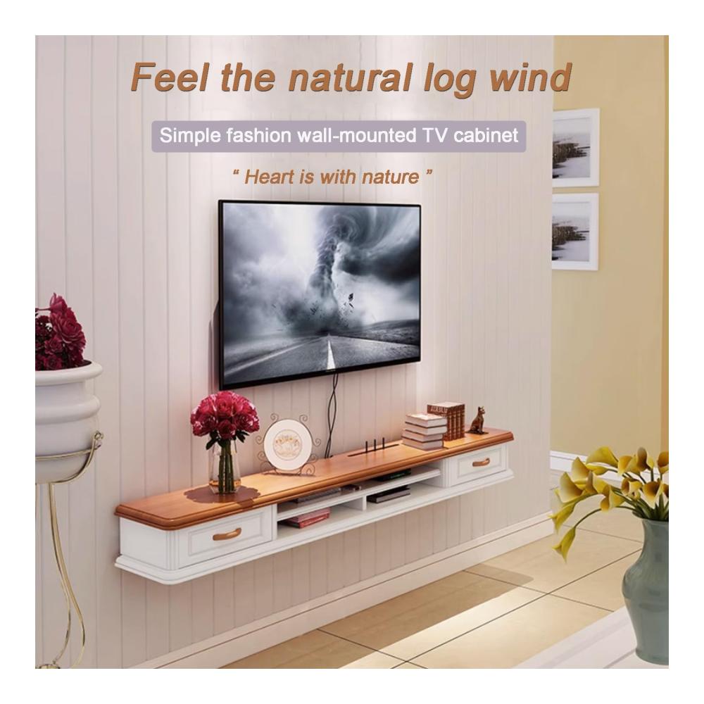 Die Schwebende TV-Kabine ist ein modern minimalistisches Media Entertainment Center für Ihr Wohn- oder Schlafzimmer. Hergestellt aus hochwertigem Massivholz in brauner Farbe bietet es großzügigen Stauraum und flexible Lagerung. Die Oberfläche ist handpoliert und wasserdicht, während die Standfüße für Stabilität sorgen. Mit doppelt gereihten Ballon-Designs für reibungsloses Schieben und Ziehen. Installieren Sie dieses stilvolle Wandmontage-Regal sicher an einer stabilen Wand und genießen Sie den natürlichen Holzwind.