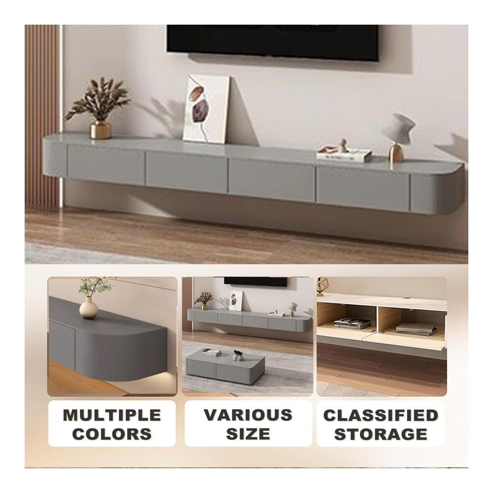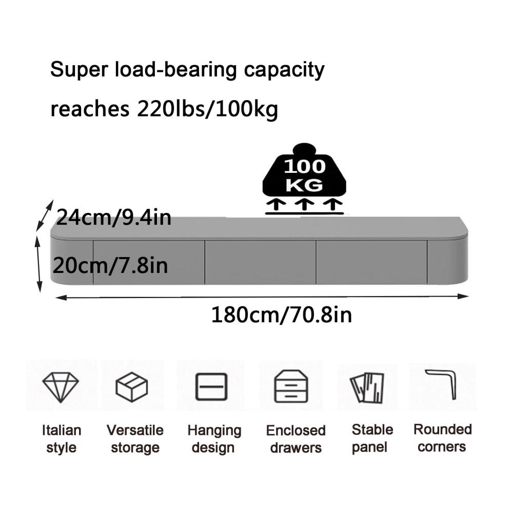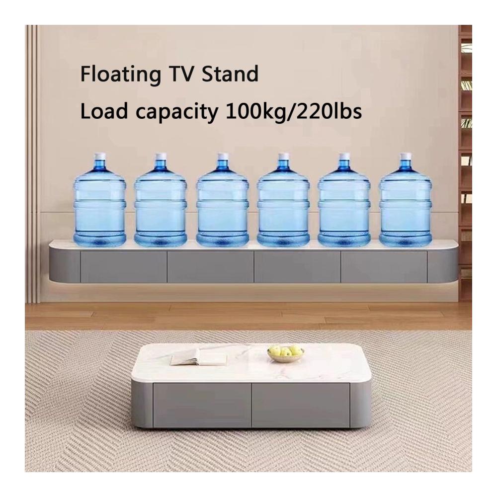 Entworfen mit einer modernen Ästhetik, ist dieser schwebende TV-Ständer perfekt für Ihr Wohnzimmer, Schlafzimmer oder jeden anderen Raum, in dem Sie Ihren Fernseher und Mediengeräte präsentieren möchten. Merkmal: — Der 47-71-Zoll-TV-Ständer ist schwimmend und bietet Platz für Fernseher bis zu 85 Zoll und ist somit eine vielseitige Wahl für verschiedene Fernsehgrößen. — Das elegante graue Eichen-Finish verleiht jedem Raum einen Hauch von Raffinesse und bietet gleichzeitig eine neutrale Kulisse für Ihre Mediengeräte. — Dieser schwebende TV-Ständer zur Wandmontage ermöglicht es Ihnen, ihn auf der perfekten Betrachtungshöhe zu platzieren und Ihr Seherlebnis zu verbessern. — Sie können es verwenden, um Ihre Lieblingsfotos, Bücher oder Dekorationsartikel zu präsentieren, was es zu einer vielseitigen Ergänzung für Ihr Zuhause macht. Die schwebende TV-Konsole ist mehr als nur ein TV-Ständer für Ihr Schlafzimmer oder Wohnzimmer. Es ist ein komplettes Unterhaltungssystem, das eine Plattform für Ihren Fernseher, eine Speicherlösung für Ihre Mediengeräte und ein dekoratives Element für Ihr Zuhause bietet. Besonderer Hinweis: Der untere schwebende Rahmen des Fernsehers unterstützt keine direkte Platzierung des Fernsehers. Die Tragfähigkeit des hängenden TV-Rahmens kann 220 Pfund erreichen Hinweis: 1. Über die Verkaufsliste