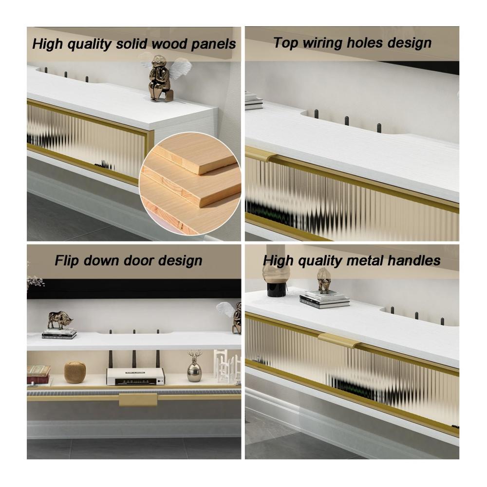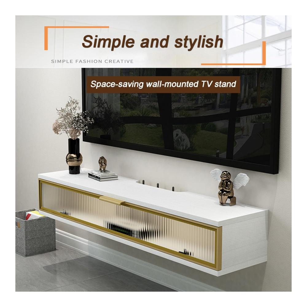 【Wandmontiertes Design】Der TV-Schrank nutzt den Platz an der Wand sinnvoll aus, spart den Boden und verbessert die Raumnutzung; der offene Boden ist praktisch für die Reinigung und entspricht dem modernen Leben in kleinen Wohnungen.
