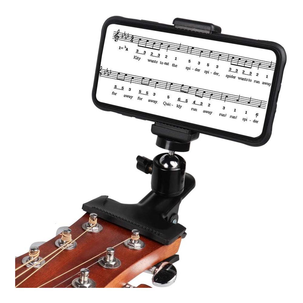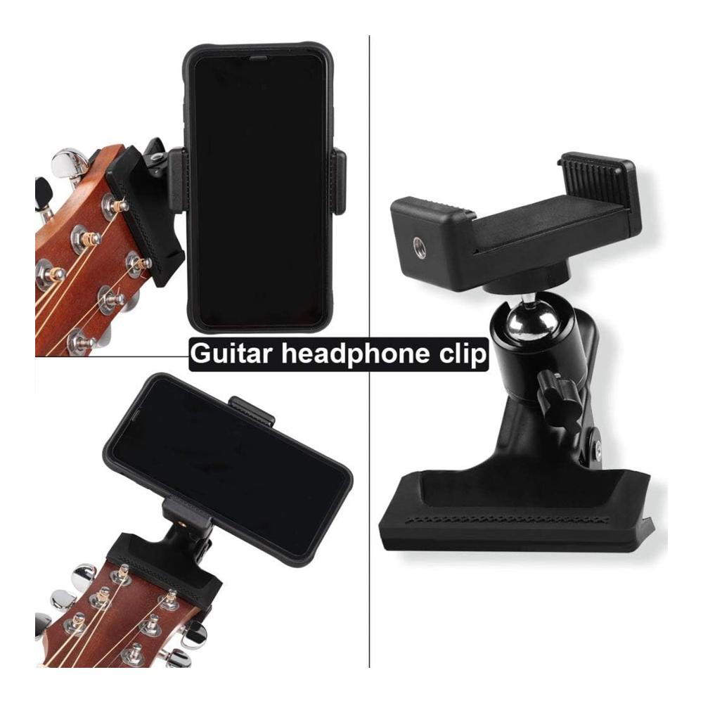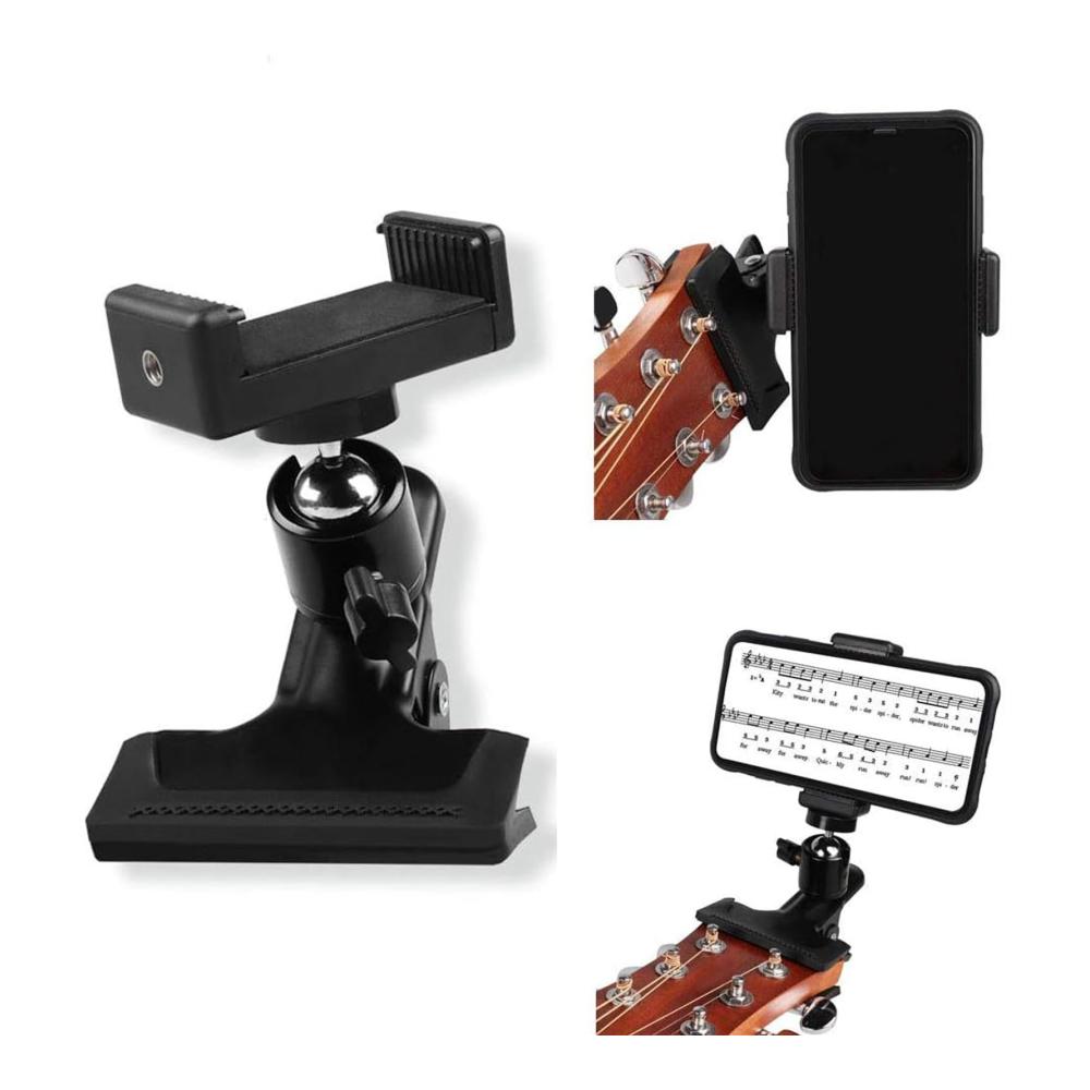 Unser Gitarren Bass Kopf Telefonhalter ist die perfekte Lösung für Selfie-Stangen und mehr. Hergestellt aus robustem Metall und Kunststoff, ist dieser Halter in Schwarz erhältlich und passt für Mobiltelefone mit einer Breite von 5,5 cm bis 7,5 cm. Ideal für Handys, Gopro-Action-Kameras und sogar Gitarren-Ukulelen. Mit seinem praktischen Design können Sie Ihr Smartphone problemlos befestigen und Ihre Live-Übertragungen in vollen Zügen genießen.