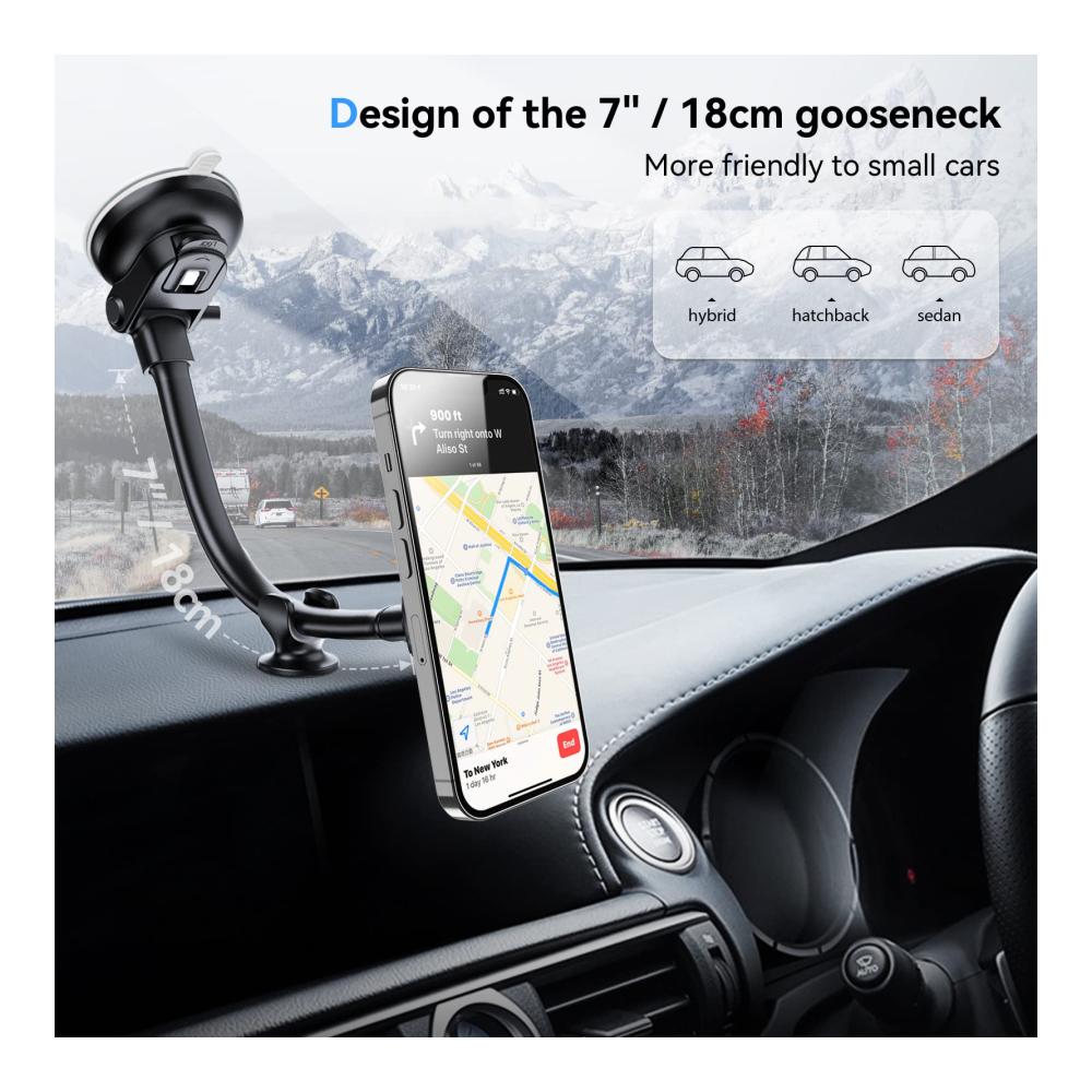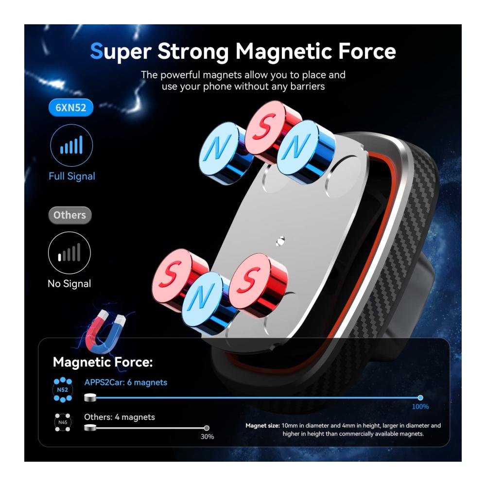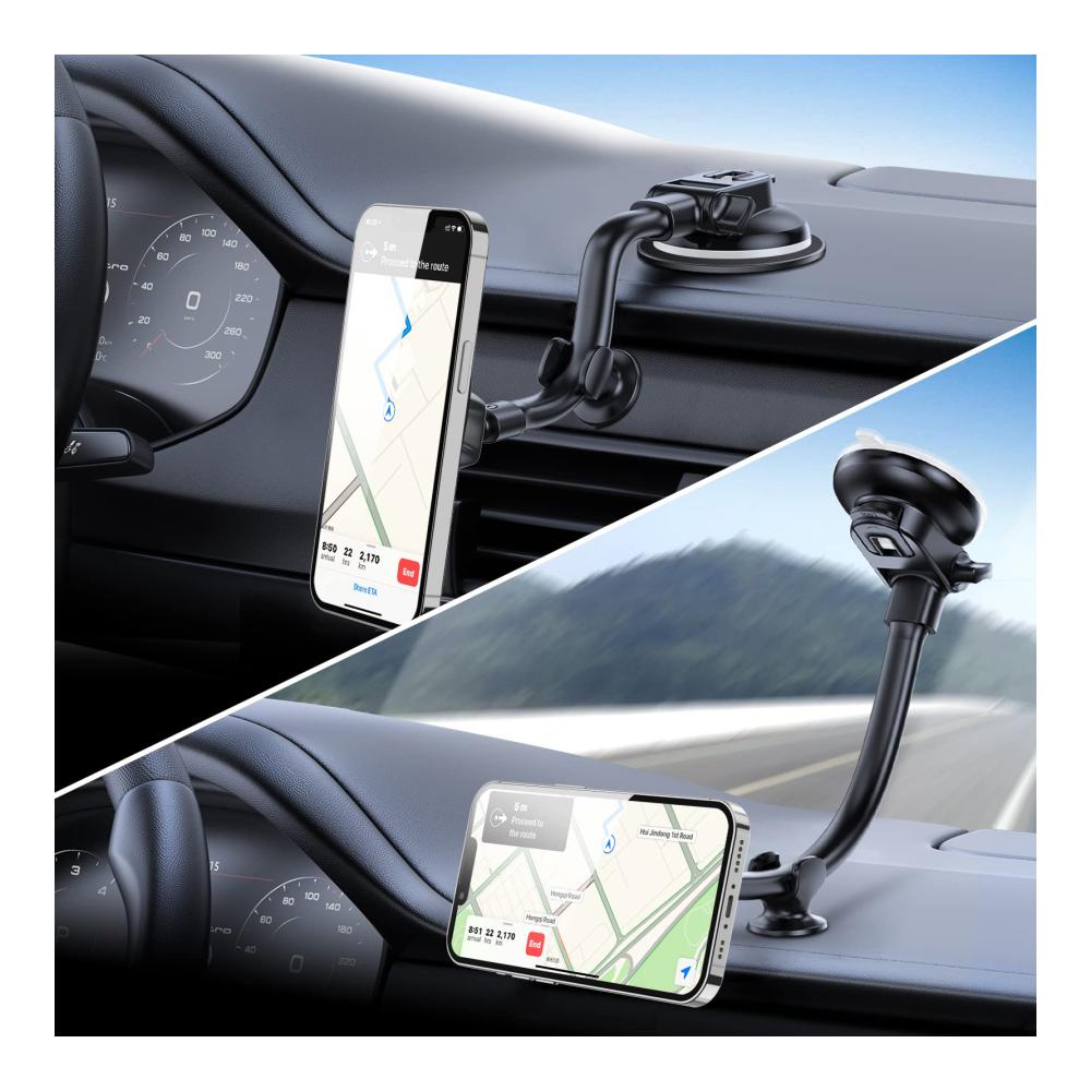 Sichern Sie Ihr Handy unterwegs mit dieser hochwertigen Autohalterung. Passend für eine Vielzahl von Smartphones, bietet sie starken Halt dank 6 leistungsstarker Magneten. Die Saugnäpfe haften zuverlässig an Armaturenbrett oder Windschutzscheibe. Mit flexibler 360° Rotation und schlankem Design ist sie vielseitig einsetzbar. Perfekt für Filme, Nachrichten und mehr, während Sie unterwegs sind. Enthält alles, was Sie für die Montage benötigen. Nutzen Sie Ihre Fantasie und halten Sie Ihre Hände frei