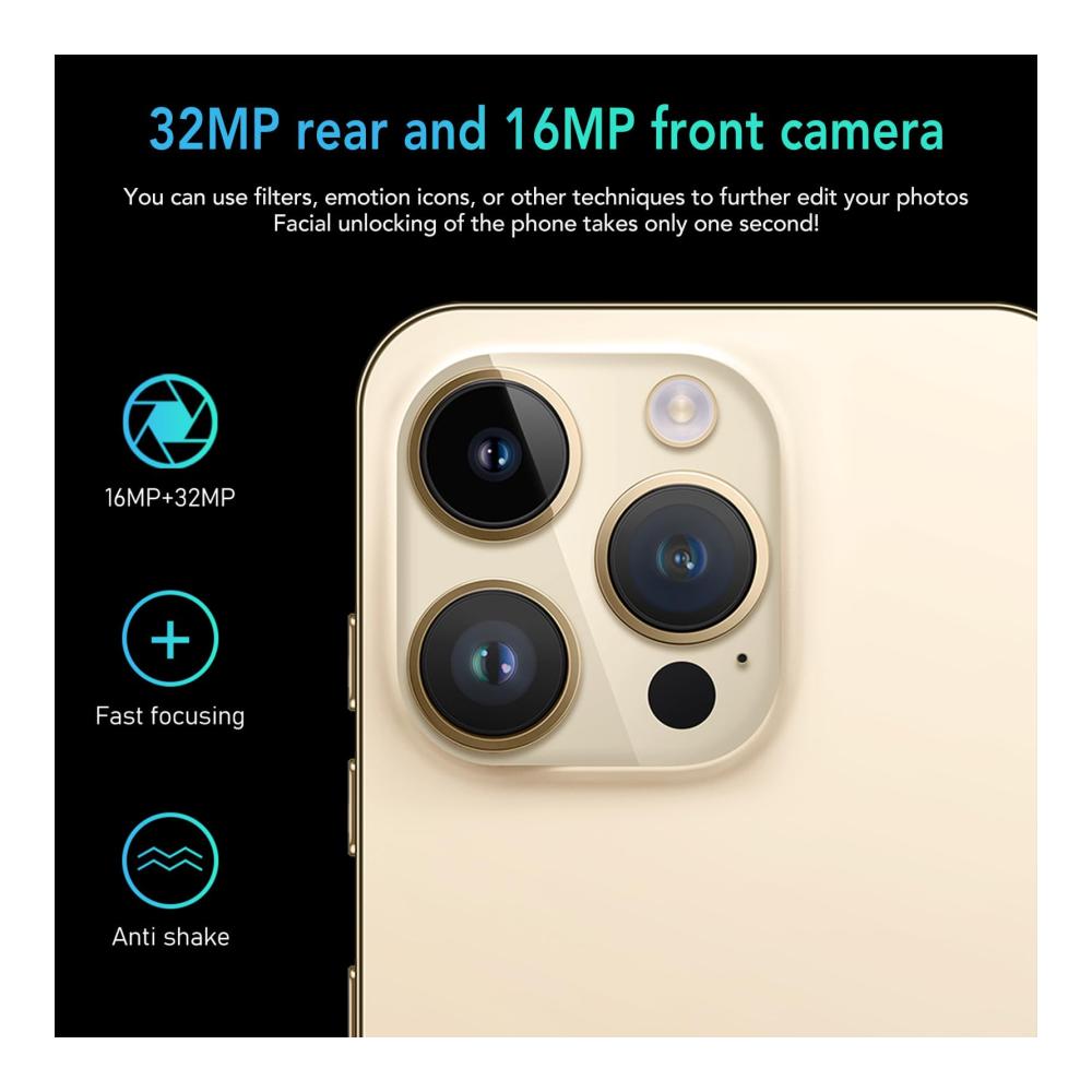 Für Android 12 System und 8 Core Prozessor: Das I14 Pro Max 6,7 Zoll Handy ist zum Schutz Ihrer Privatsphäre mit einem Android 12 System ausgestattet. Das Smartphone implantiert keine Werbung, sodass Sie bei der Nutzung ein besseres Erlebnis haben. Diese Architektur verfügt über einen 8 Kern Prozessor und führt mehrere Anwendungen mit ausreichender Liquidität und Reaktionsfähigkeit aus, um Ihre Arbeitseffizienz- und Unterhaltungsanforderungen zu erfüllen.
