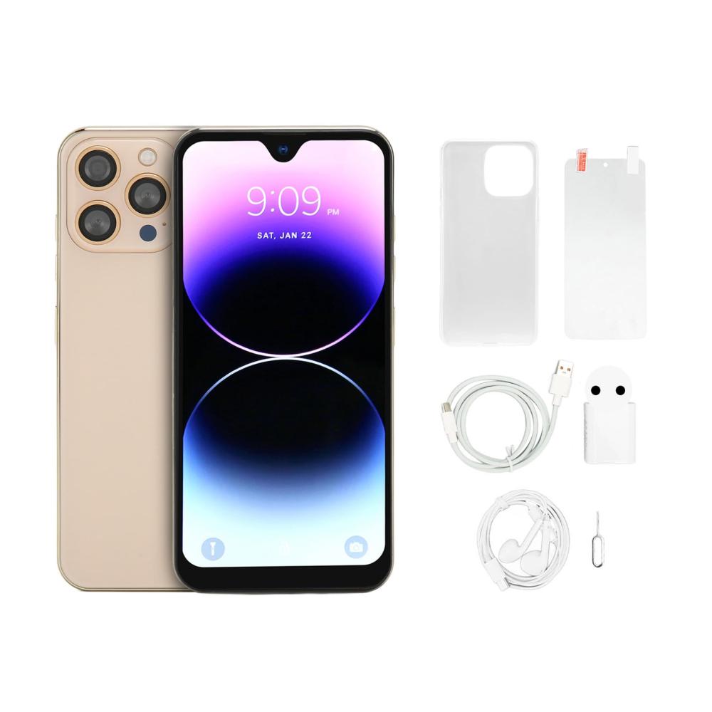 Spezifikation:Artikeltyp: I14 PRO MAX TelefonProduktmaterial: ABS, LCDGewicht: Ca. 430 g / 15,2 UnzenSystem: für Android 12.0 SystemUnterstützte Sprachen: Unterstützt mehrere Sprachen CPU: Qualcomm Snapdragon 680Speicher: 8 GB RAM, 256 GB ROMFestplatte : Unterstützt Mikrospeicher bis zu 128 GB (nicht im Lieferumfang enthalten)Bildschirm: 6,7 ZollBluetooth: UnterstütztTouchscreen (Auflösung): IPS High Definition GroßbildschirmE/A: Typ C Anschluss x 1, Ladeanschluss gemeinsam mit KopfhöreranschlussHupe: EinzelhornVibrationsmotor: UnterstütztMikrofon: UnterstütztWiFi: Externe hohe Leistung, geringer Stromverbrauch 2,4 G, 5G Dual Band WiFi B/T/N, unterstützt 802.11a/b/g/nNetzwerkstandard: GSM 850/900/1900 MHz 3G: 850/1900/2100 MHz4G: B1.B2.B4.B5.B7.B8.B20.28A.28B.B40.B66 Dual Card Dual StandbyKartensteckplätze: Drei Kartensteckplätze (geeignet für die Installation von zwei Nano SIM Karten und einer Micro Speicherkarte gleichzeitig)Schwerkraftmessung: UnterstütztEntfernungserkennung: UnterstütztGPS: UnterstütztKamera: Frontkamera 16 MP, F/2.0 Blende, feste Brennweite, Rückkamera 32 MP, Farbe, Blende F/1,8Batterie: 6800 mAh Lithiumbatterie (im Lieferumfang enthalten)Spannung: 100–240 VWeitere Funktionen: GesichtsentriegelungAnwendung:Voll aufgeladen, sofort einsatzbereit.Paketliste:1 x Telefon 1 x Telefonhülle 1 x Telefonfolie 1 x Datenkabel 1 x Ladekopf 1 x Nadel zum Herausnehmen der SIM Karte1 x Kopfhörer 1 x Bedienungsanleitung