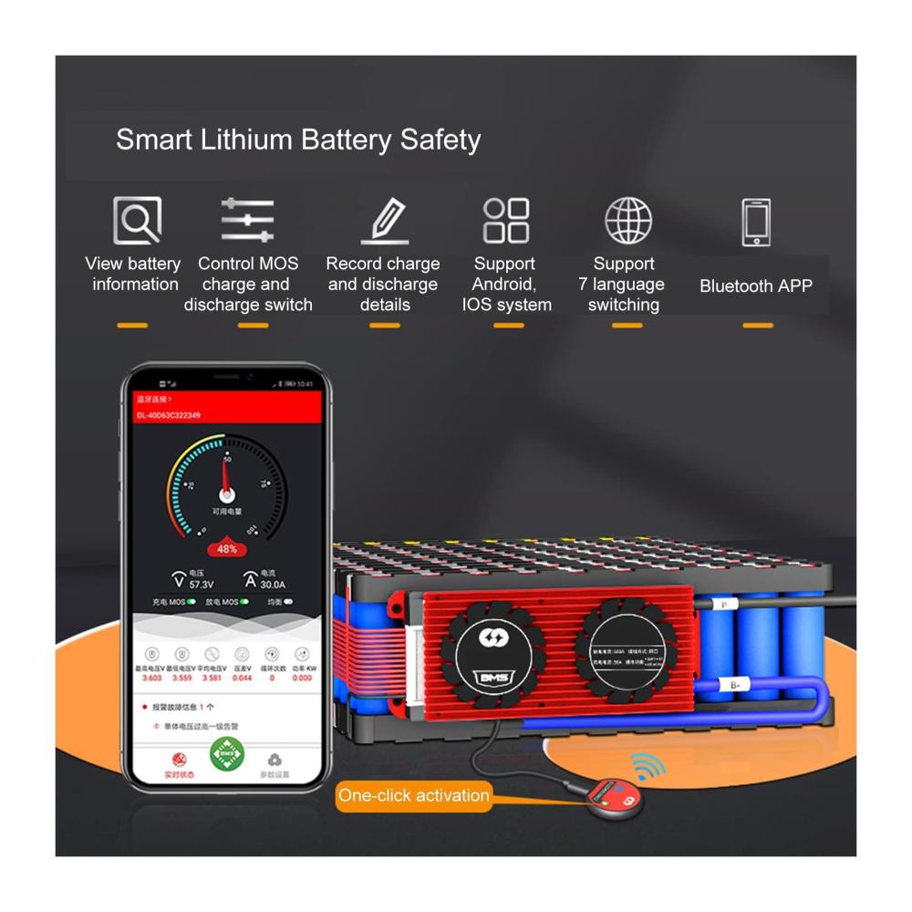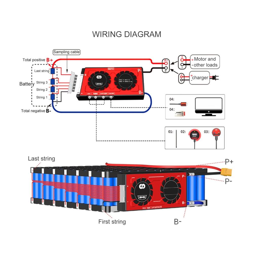 ★ Stromschutz—-BMS Programmierbarer Überladungs-Überentladungsschutz, Li-Ionen-Akku stoppt den Ladevorgang, wenn die Spannung den Grenzwert erreicht, und stoppt die Entladung, wenn die Spannung den Grenzwert erreicht.