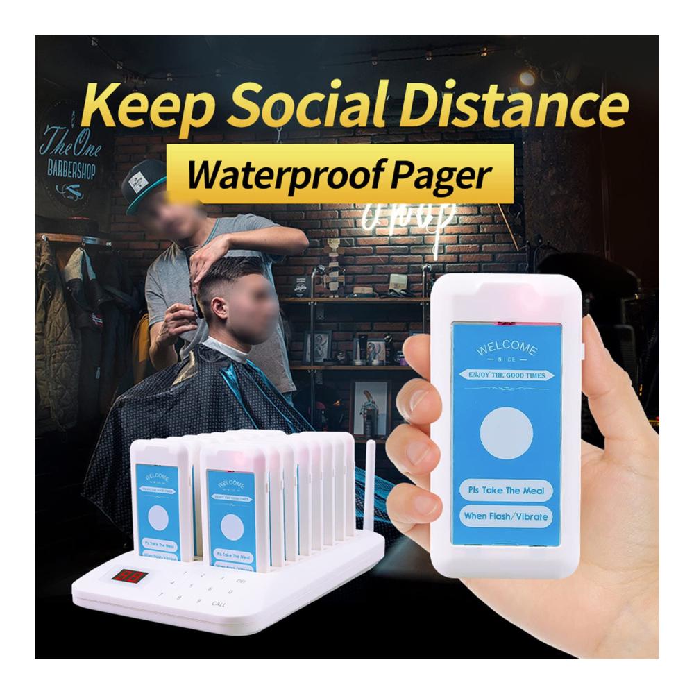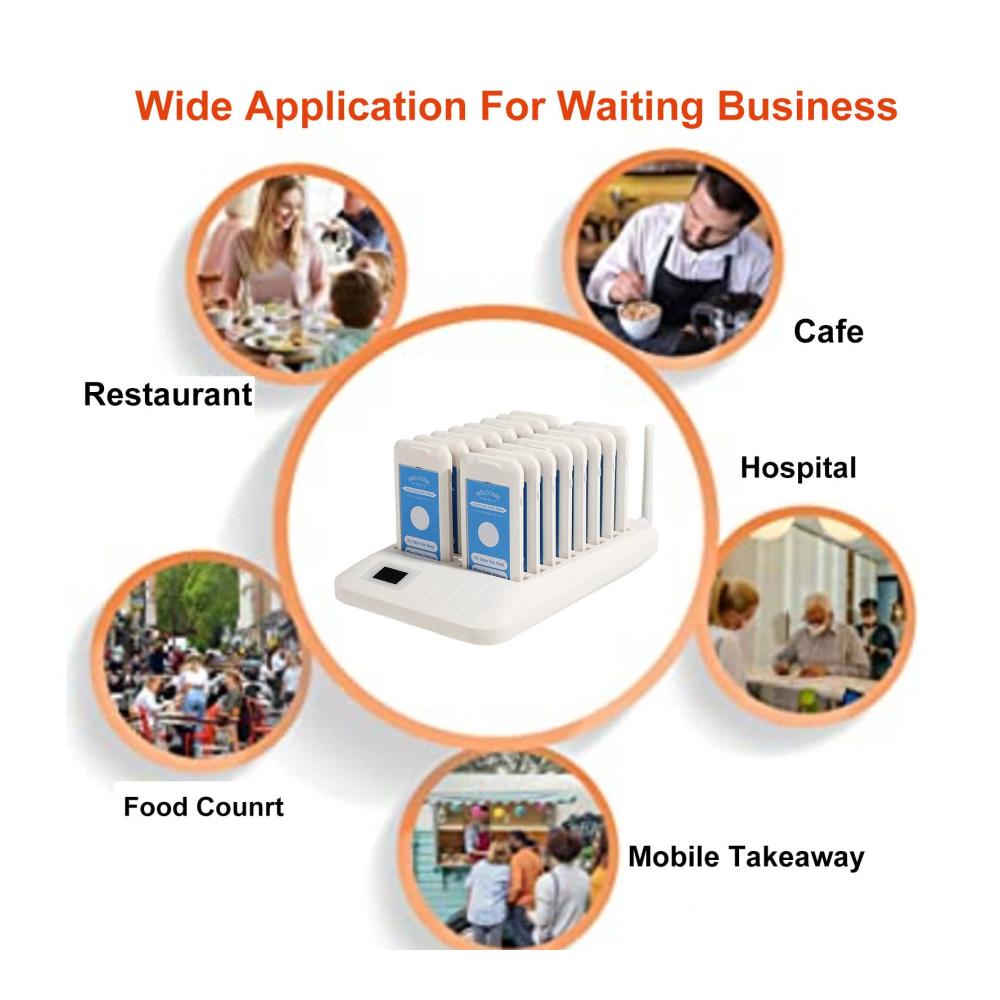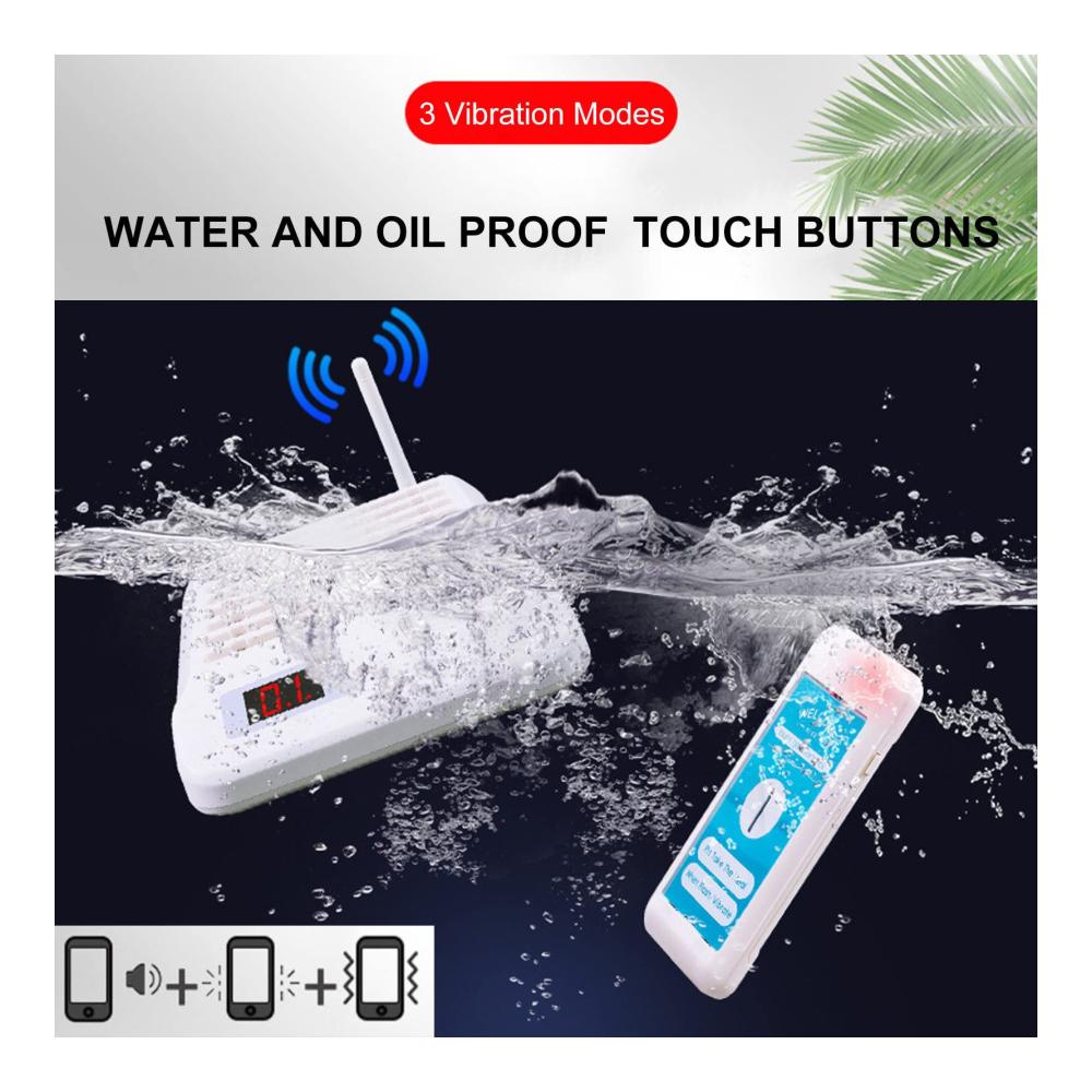 【WASSERDICHT UND STURZSICHER】 Mit einem wasserdichten und ölbeständigen Touchpad ist das Paging-System ideal für Restaurants, Cafés, Imbisswagen und andere Umgebungen, in denen es häufig zu versehentlichen Wasserlecks kommt. Es kann auch in Kliniken, Krankenhäusern, Kirchen, Bibliotheken, Garagen usw. verwendet werden.