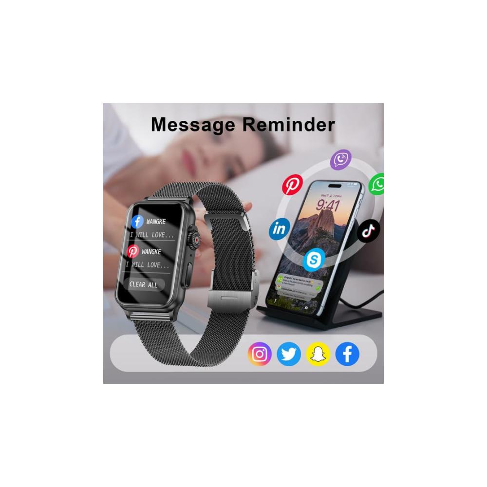 Die LAMA Smartwatch für Herren und Damen in elegantem Schwarz bietet zahlreiche intelligente Funktionen, um Ihnen ein gesünderes Leben zu ermöglichen. Mit einem 1,57-Zoll HD-Display, Anrufannahme- und -tätigungsfunktionen sowie Benachrichtigungen für Anrufe und soziale Medien bleiben Sie stets verbunden.