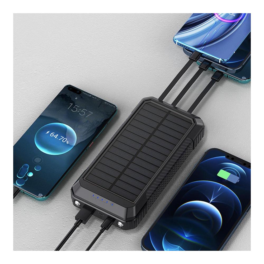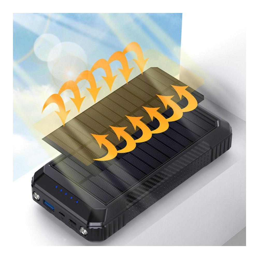 Unsere schwarze Solar-Powerbank mit 30.000 mAh Kapazität bietet nicht nur eine beeindruckende Leistung, sondern auch die Möglichkeit, Ihre Geräte umweltfreundlich aufzuladen. Dank der fortschrittlichen Solarladetechnologie können Sie Ihre Powerbank unterwegs aufladen und sind damit unabhängig von herkömmlichen Stromquellen.