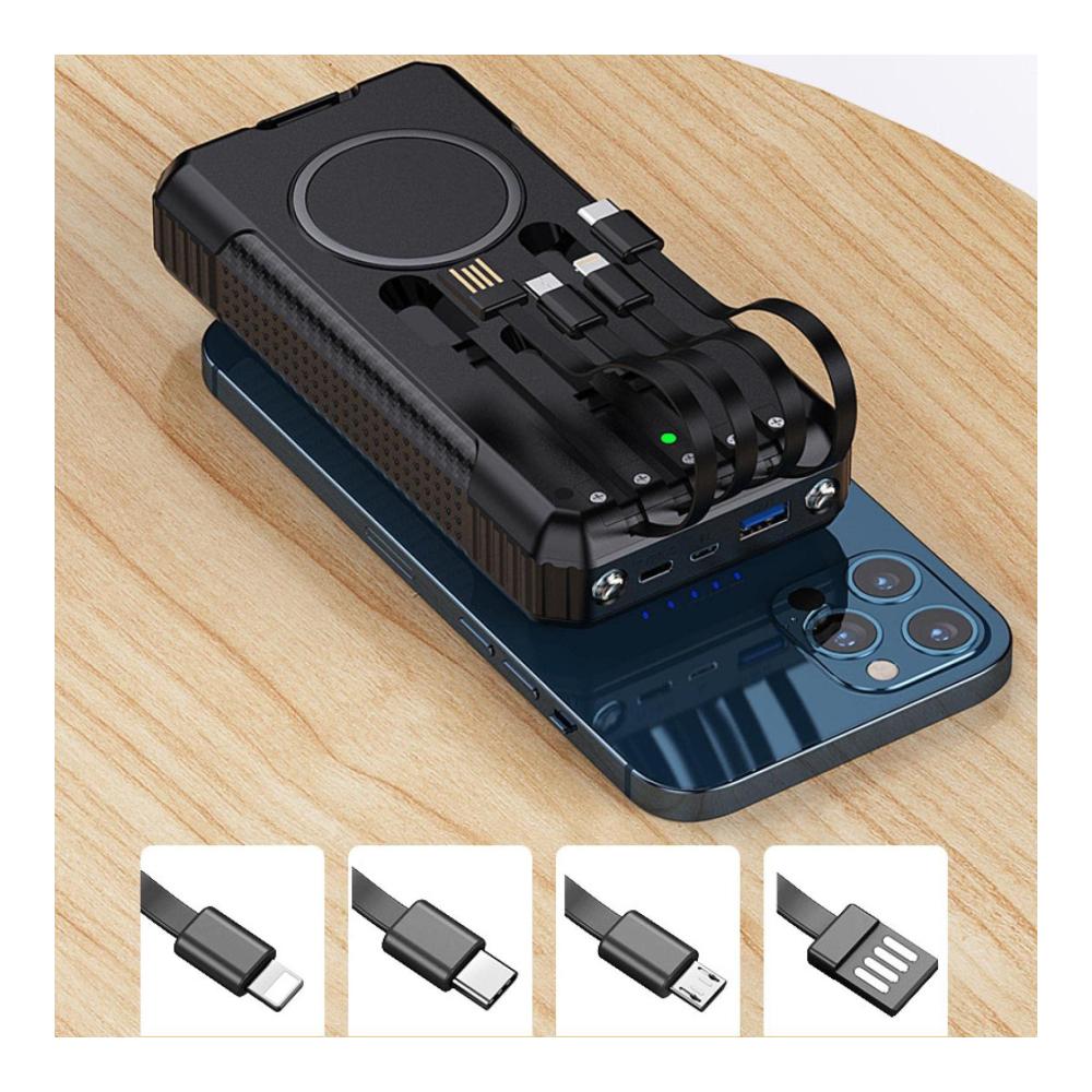 Mit der Zwei-Wege-Schnellladefunktion können Sie nicht nur die Powerbank selbst schnell aufladen, sondern auch Ihre Geräte im Handumdrehen mit Energie versorgen. Das kabellose Ladegerät ermöglicht es Ihnen, Ihre Geräte ohne lästige Kabel zu verbinden, was Ihre Nutzungserfahrung noch komfortabler macht.