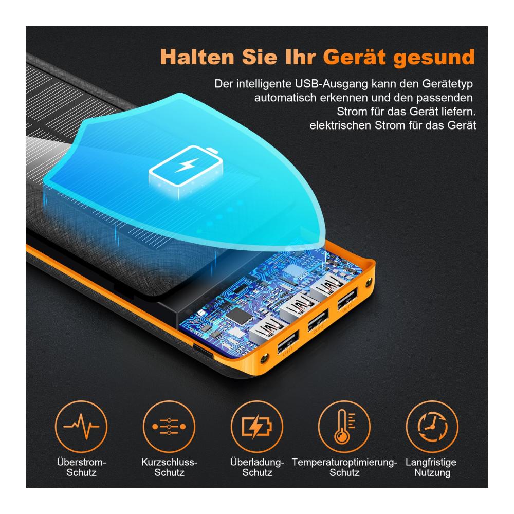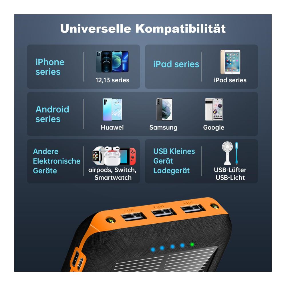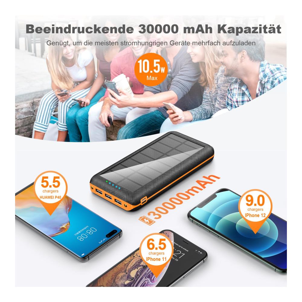 Unsere Solar Powerbank 30000mAh bietet Ihnen die ultimative Energiequelle für unterwegs. Ausgestattet mit robusten Materialien und einem intelligenten Sicherheitssystem, können Sie sich auf eine zuverlässige Leistung verlassen.