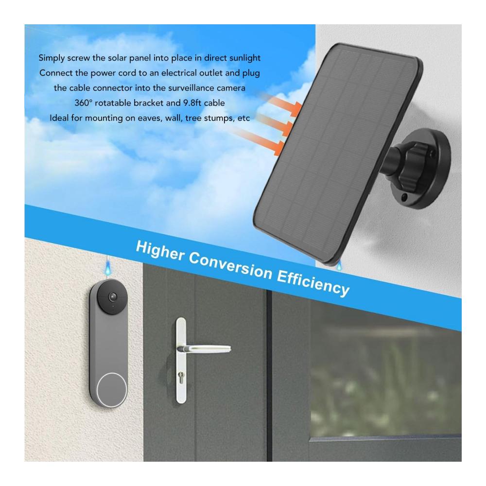 Die Installation ist einfach und vielseitig. Befestigen Sie das Solarpanel einfach unter direkter Sonneneinstrahlung, schließen Sie das Netzkabel an und verbinden Sie es mit Ihrer Überwachungskamera. Mit der um 360° drehbaren Halterung und dem 9,8 Fuß langen Kabel ist es flexibel für verschiedene Montageorte.