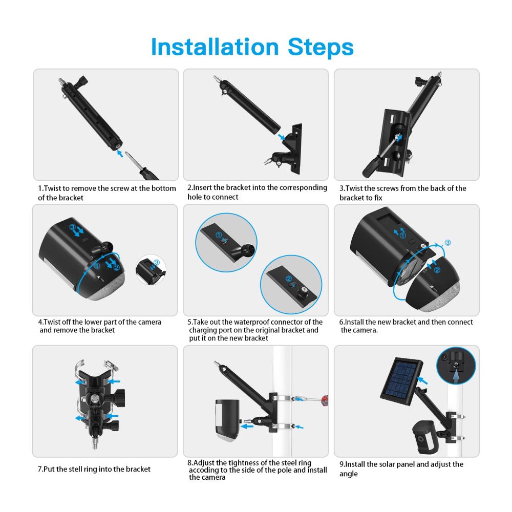 • ERHÖHTER ANSICHTSWINKEL – Befestigen Sie Ihre Kamera an den Wandhalterungen für einen erhöhten Blickwinkel und Ihr Solarpanel höher für mehr direktes Sonnenlicht.