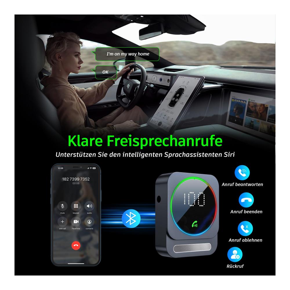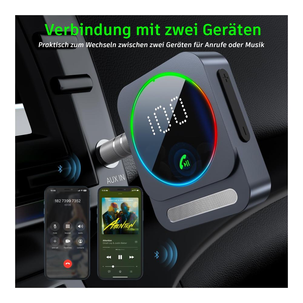 🎶Bluetooth 5.3 Technologie🎶 — Bluetooth Auto adapter verfügt über einen integrierten Bluetooth 5.3 Chip, der die Übertragungsverzögerung und Verbindungsdefektprobleme der alten Bluetooth Version verbessert und Ihnen eine schnellere, stabilere und intelligentere Verbindung und Freude bietet verlustfreie Klangqualität. Auto Bluetooth empfänger auch über eine Power-Off-Memory-Funktion und verbindet sich bei jedem Einschalten automatisch mit dem zuletzt verwendeten Gerät.
