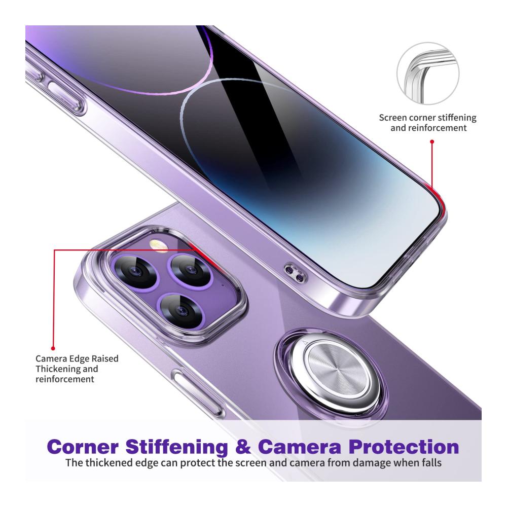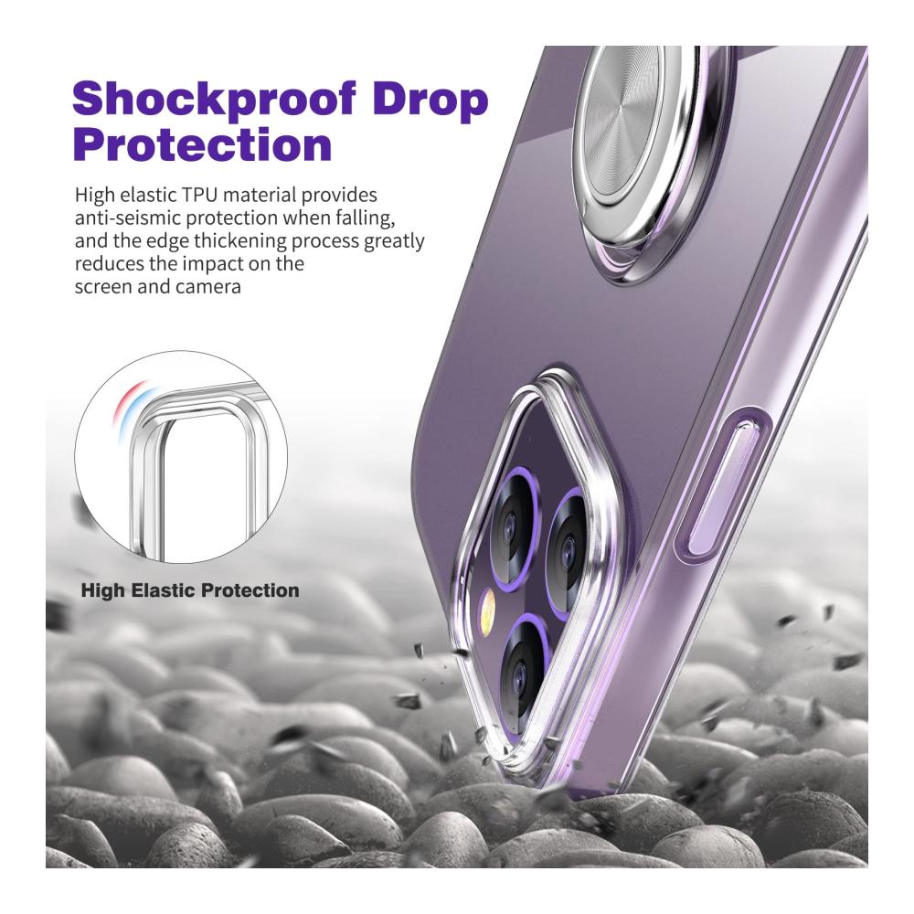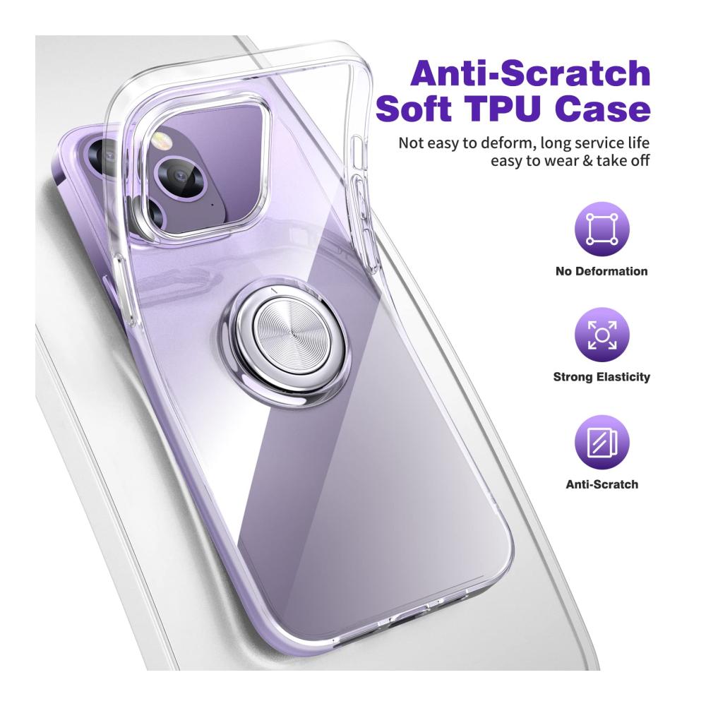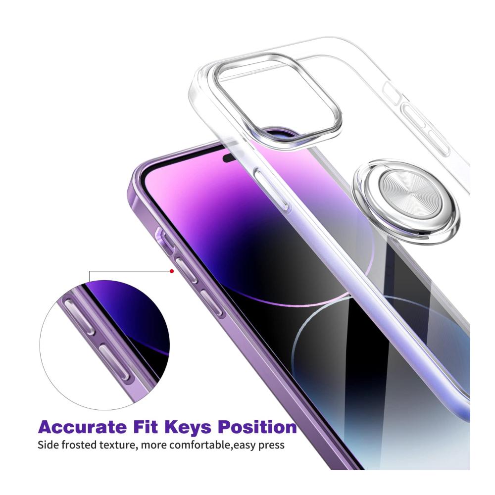 Ultradünne TPU-Schutzhülle für iPhone 14 Pro, transparent [6,1 Zoll]. Präzise Passform und leicht zu drücken. Eckverstärkung und erhöhter Schutz der Kamerakante. Magnetische Autohalterung und Ringhalterung.