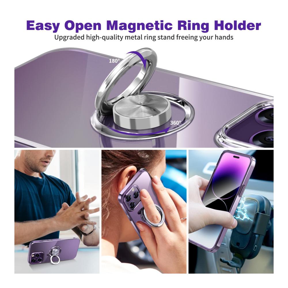 【Magnetische Autohalterung】Diese iPhone 14 Pro Hülle mit Ringhalterung hat ein Metallstück, wodurch die Handyhülle magnetisch in die Handyhalterung gezogen wird, die nicht leicht zu fallen ist. Es ist stark und langlebig, indem Sie Ihre Hände während der Fahrt befreien, damit Sie sich auf das Fahren konzentrieren können.