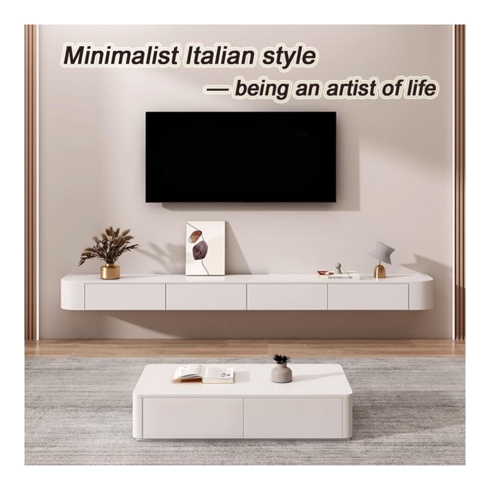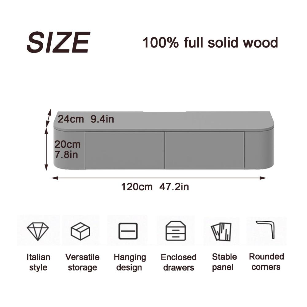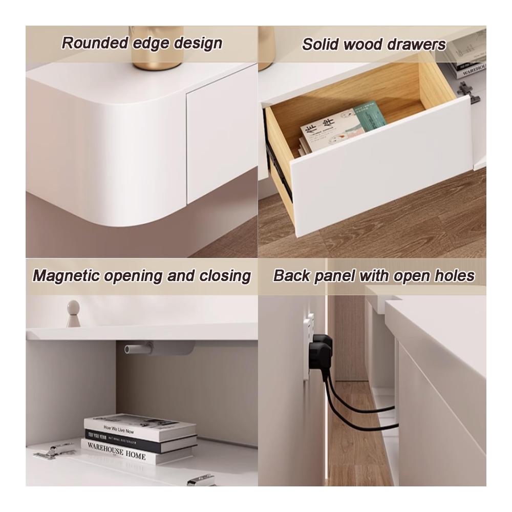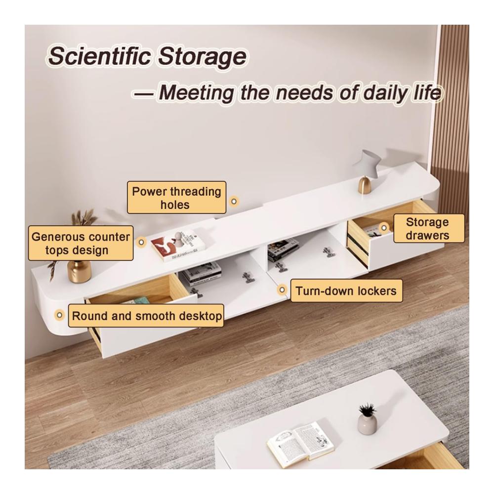 【Hängendes Design】Überhängendes Design für die Wandaufhängung, nutzt den Platz an der Wand voll aus. Die Rückwand des TV-Schranks ist offen, um die unordentlichen Kabel zu verbergen und alle Arten von Steckdosen für eine bequemere Nutzung abzudecken.