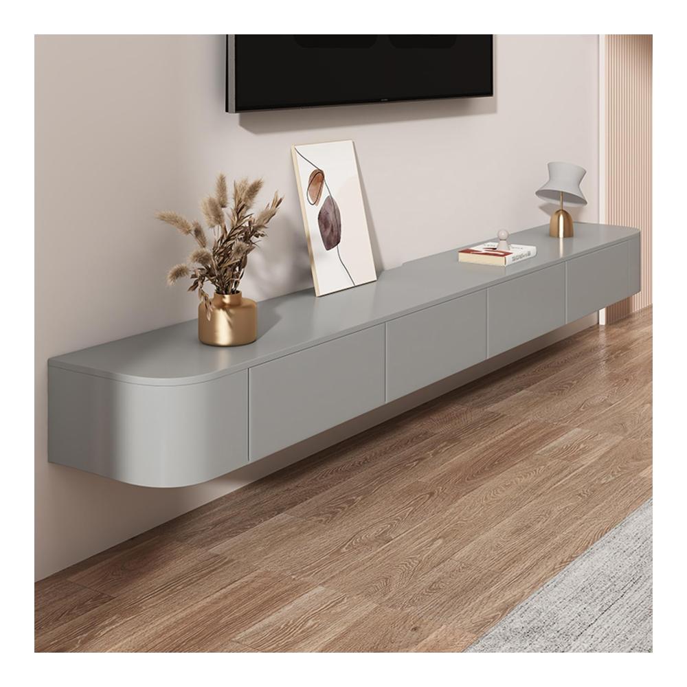 Die Standfüße dieses wandmontierten TV-Schranks bieten eine robuste Basis für Ihr Wohn- oder Schlafzimmer. Mit einem modern minimalistischen Stil und italienischem Flair ist dieser TV-Ständer eine luxuriöse Ergänzung für Ihr Zuhause. Das überhängende Design spart Platz, während das hochwertige nordamerikanische FAS-Güteklasse-Gummiholz für Langlebigkeit sorgt. Eine offene Rückwand verbirgt unordentliche Kabel, und die abgerundeten Schrankkanten sorgen für Sicherheit und Stil. Ein praktisches nach unten klappendes Türdesign und solide Kiefernschubladen machen diesen TV-Ständer zu einer umweltfreundlichen und funktionalen Wahl.