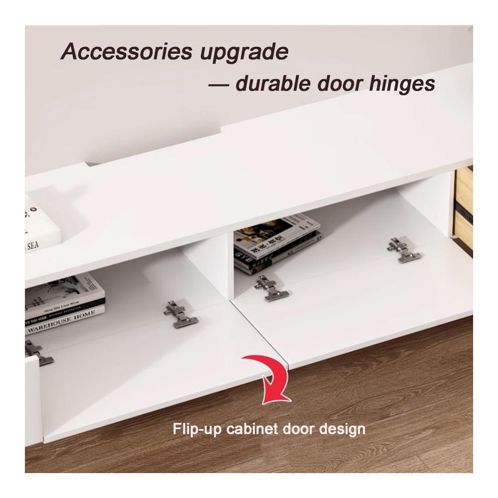 【Nach Unten Gerichtetes Design】Der Schrank des TV-Schrankes nimmt das Design der nach unten gedrehten Tür und des magnetischen Öffnens und Schließens an, das es sicherer macht, die Schranktür zu öffnen und zu schließen, und das es sicherer macht, Dinge bei der Klassifizierung zu speichern.