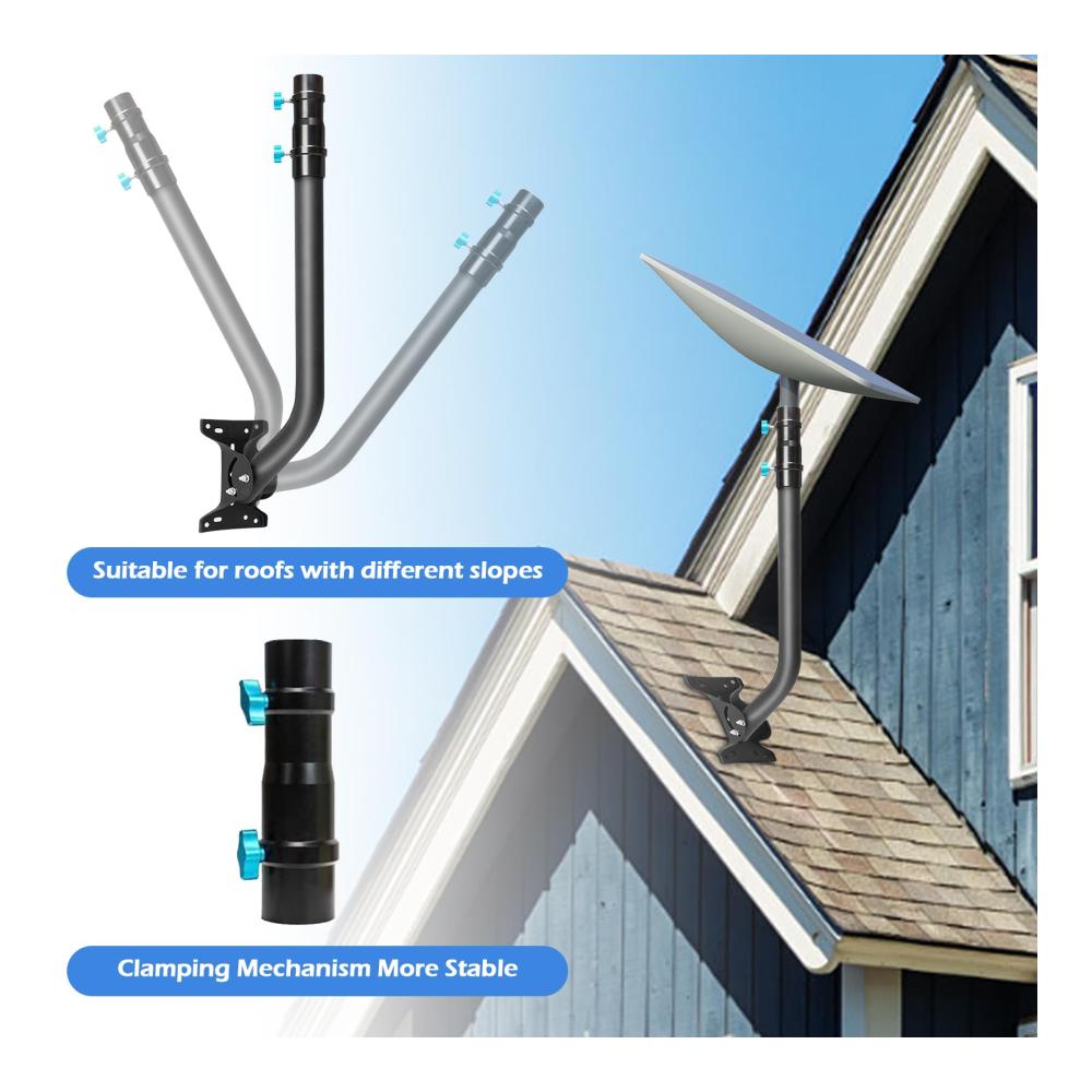 EINSTELLBAR: Diese Hardware verfügt über einen einstellbaren Knopf, um die Kompatibilität mit den meisten Setups zu gewährleisten, und wird häufig in Antennenmasten, Fahnenmasten, Angelruten und mehr verwendet. Mit der langen Starlink-Dachhalterung kann der Installationswinkel je nach tatsächlicher Situation frei eingestellt werden.