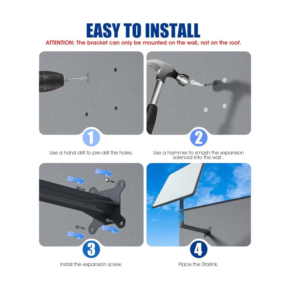 [Einfache Installation] Die Starlink-Mastenwandhalterung lässt sich mit nur wenigen Handgriffen einfach installieren. Es sind keine beruflichen Fähigkeiten oder Erfahrungen erforderlich.