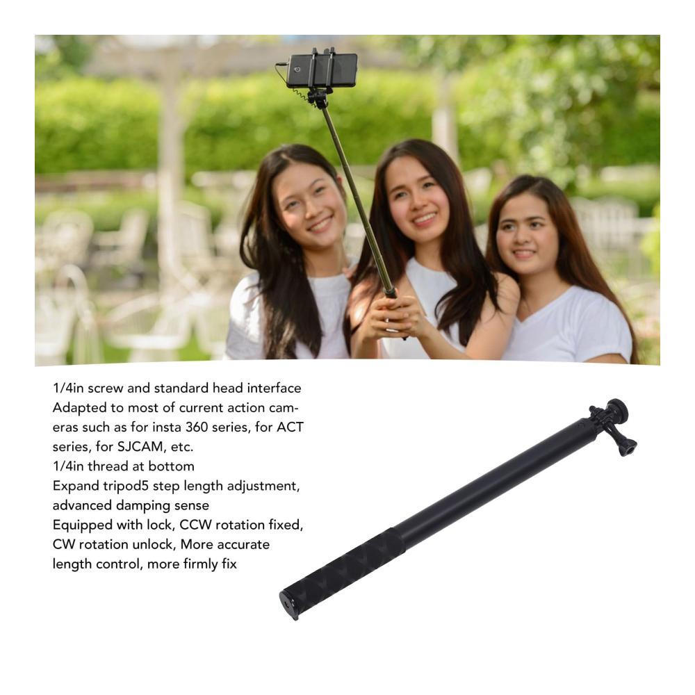 Entdecken Sie die vielseitigen Möglichkeiten dieses erweiterten Selfie-Sticks und Einbeinstativs. Die einfache Bedienung ermöglicht eine präzise Längenverstellung dank des fortschrittlichen Dämpfungssinns. Dank seines leichten ABS-Materials ist er kompakt und tragbar, ideal für Langzeitaufnahmen. Die Aluminiumlegierung macht ihn stabil und stoßfest, sogar unter Wasser verwendbar. Der rutschfeste Griff bietet sicheren Halt, während die 1/4-Zoll-Schraube die Anbringung Ihrer Action-Kamera ermöglicht. Ein professionelles Werkzeug für Fotoliebhaber.