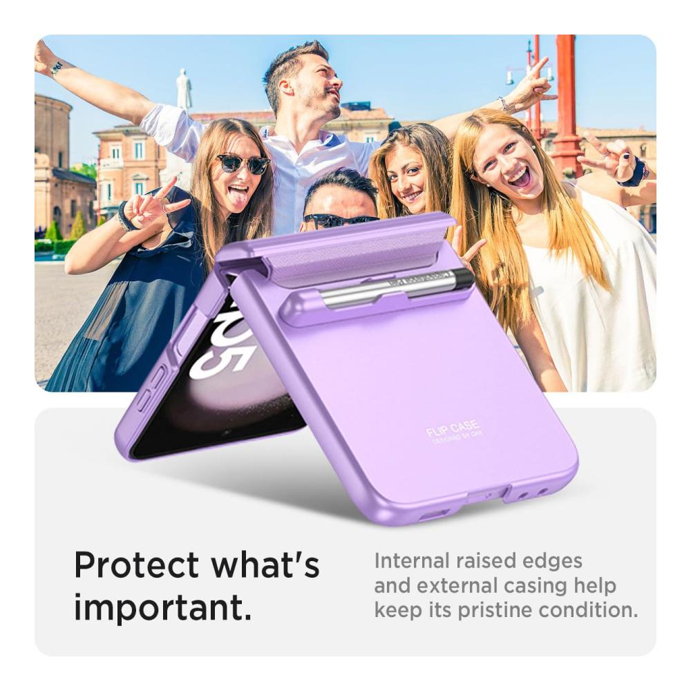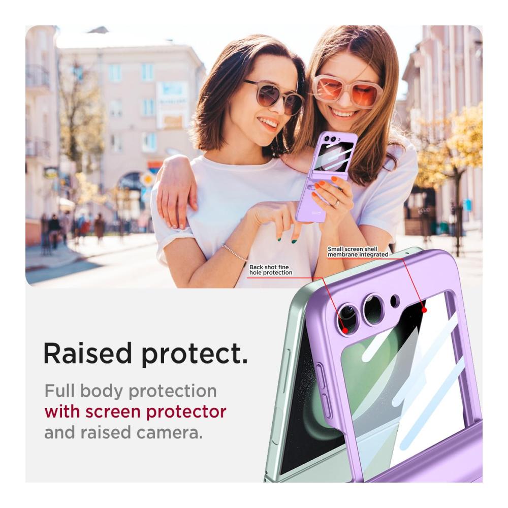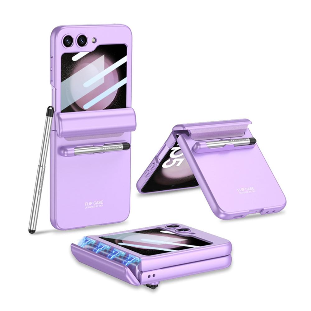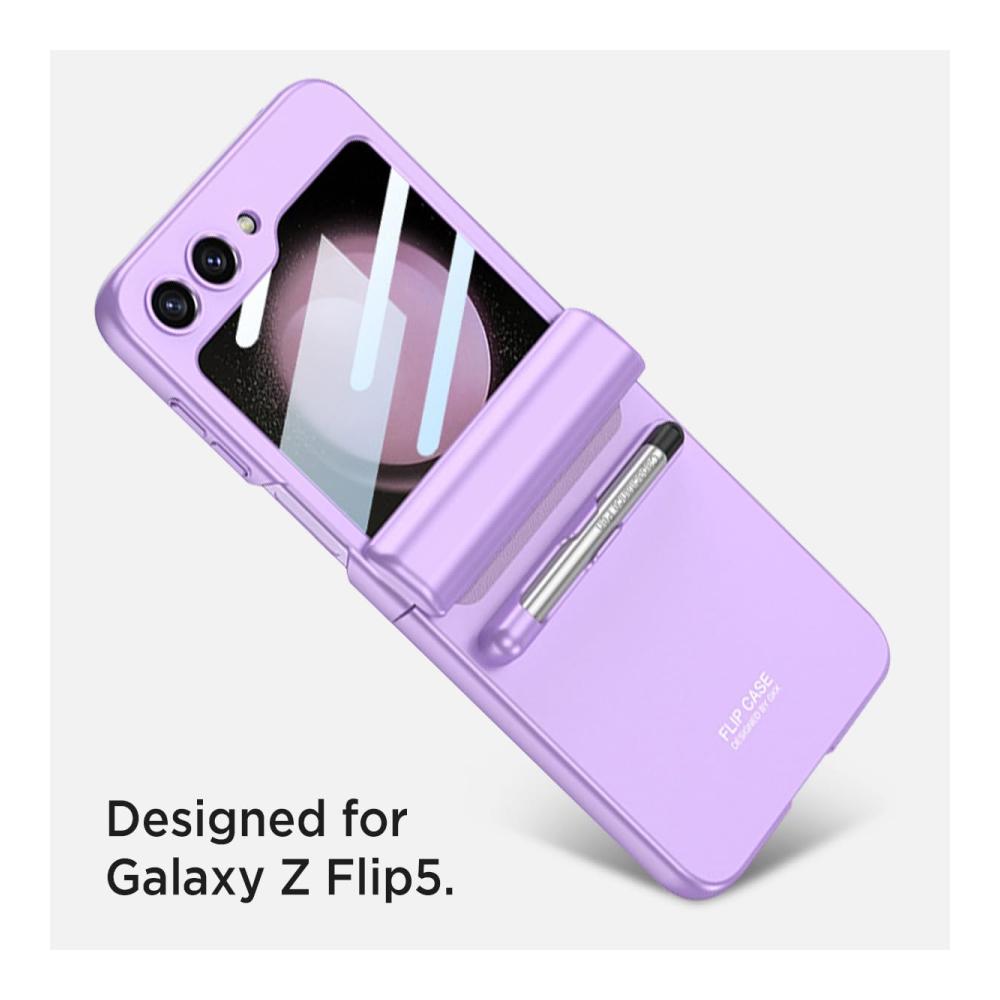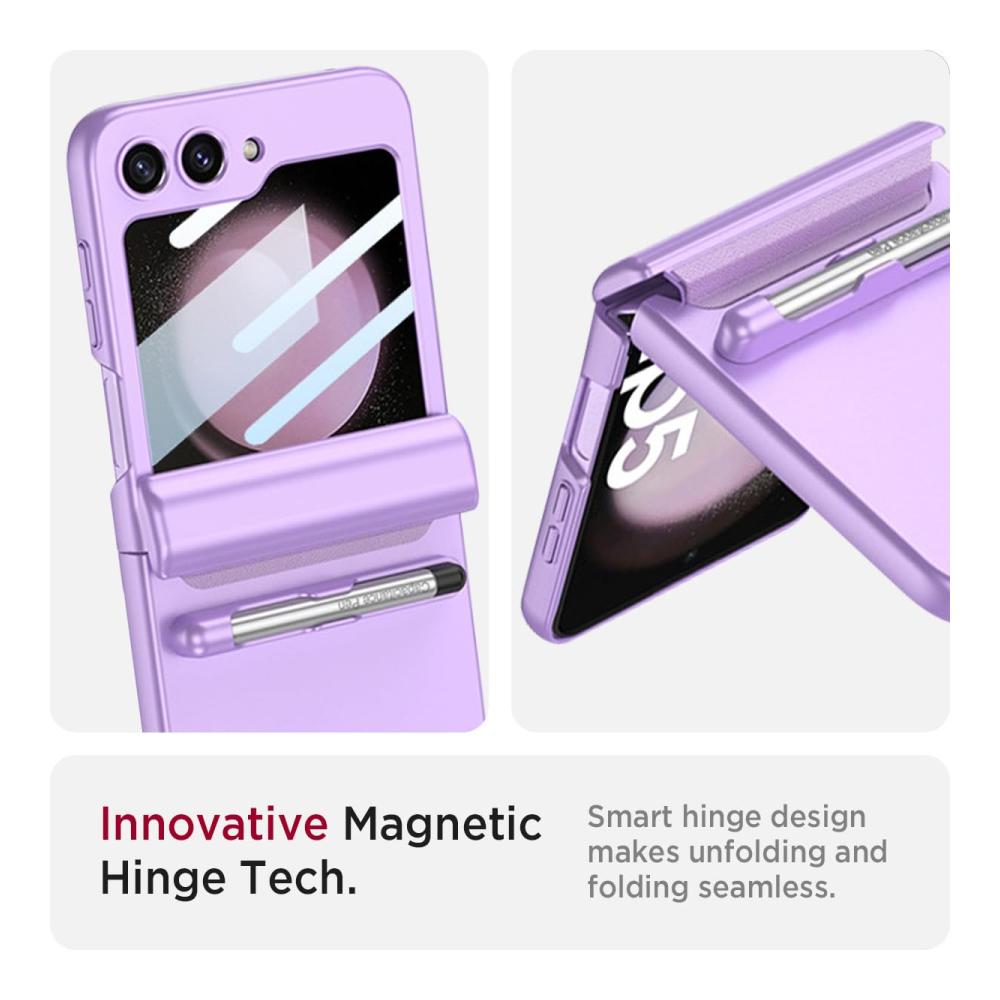 Entdecken Sie die vielseitige Klapphülle von Miimall, passend für das Samsung Galaxy Z Flip 5. In eleganter Lila-Farbe und aus hochwertigem Polykarbonat gefertigt, bietet sie schlanken Schutz mit integriertem Stifthalter und Displayschutz. Das robuste Design mit Scharnierschutz bewahrt Ihr Telefon vor Kratzern und Stößen. Komplett mit Displayschutzfolie und für erwachsene Nutzer geeignet. Maße: 8 x 7 x 1 cm.