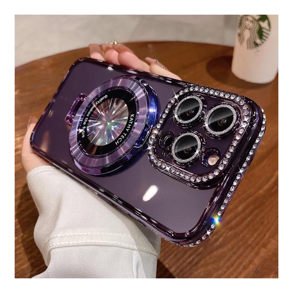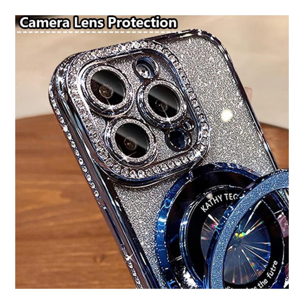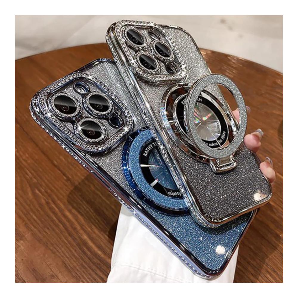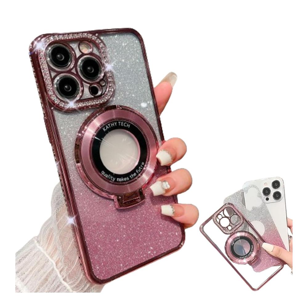 【Strong Magnetic Power】Glitter rhinestones magnetic for iPhone case with invisible stand, the perfectly aligned magnetic ring allows the phone to charge faster with the case. And it&39;s free from signal interference.