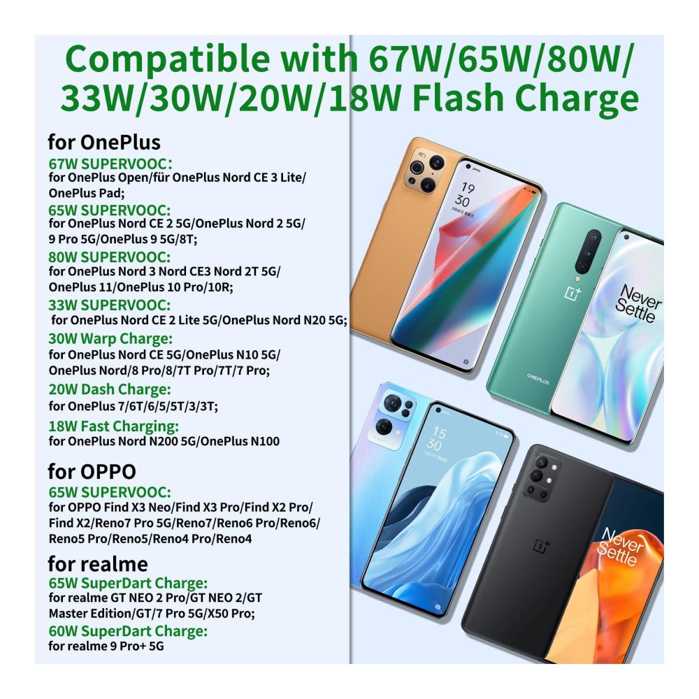 ✅【Kompatibilität OnePlus USB Ladegerät und USB C Kabel】Speziell entwickelte 67W SUPERVOOC für OnePlus Nord CE 3 Lite/OnePlus open/OnePlus Pad/65W SUPERVOOC für OnePlus Nord 2 5G/OnePlus Nord CE 2/OnePlus 9 Pro/9/8T; 33W SUPERVOOC für OnePlus Nord CE 2 Lite/Nord N20; 30W Warp Charge für OnePlus Nord CE/N10/Nord/8 Pro/8/7T Pro/7T/7 Pro;für OPPO Find X3 Neo/X3 Pro/X2 Pro/X2/Reno7 Pro 5G/Reno7/Reno6 Pro/Reno6;für realme GT NEO 2 Pro/GT NEO 2GT/7 Pro 5G/X50 Pro;für realme 9 Pro 5G